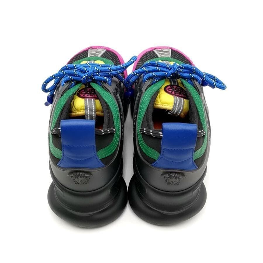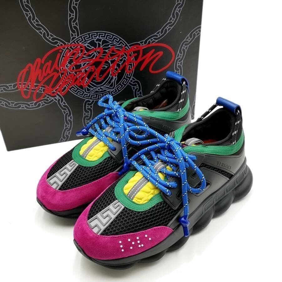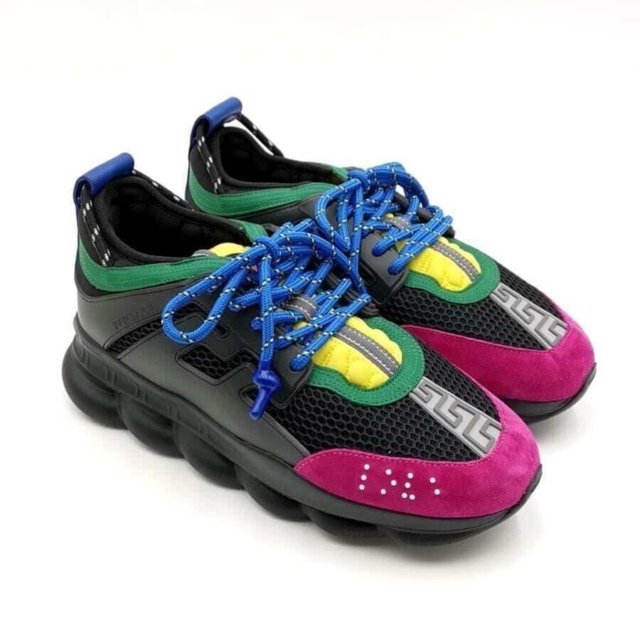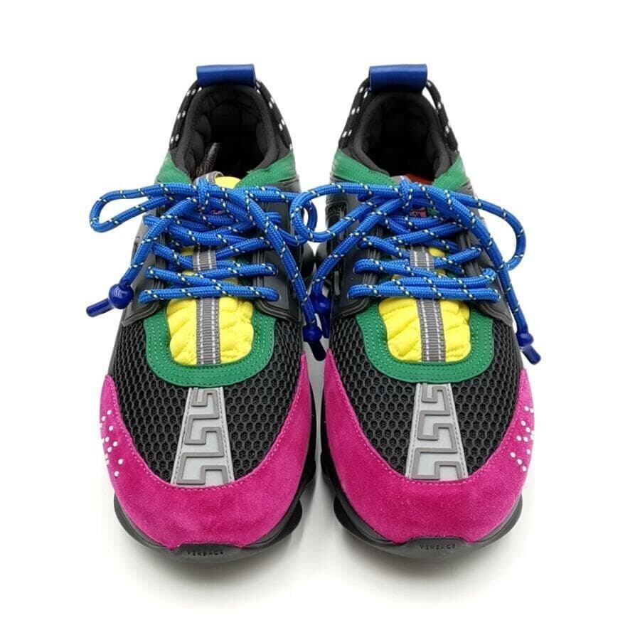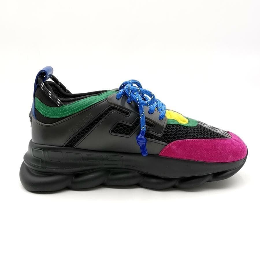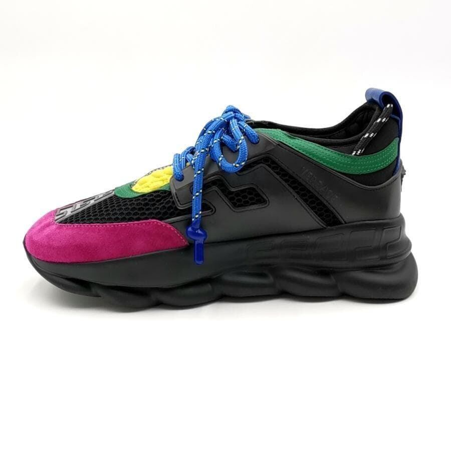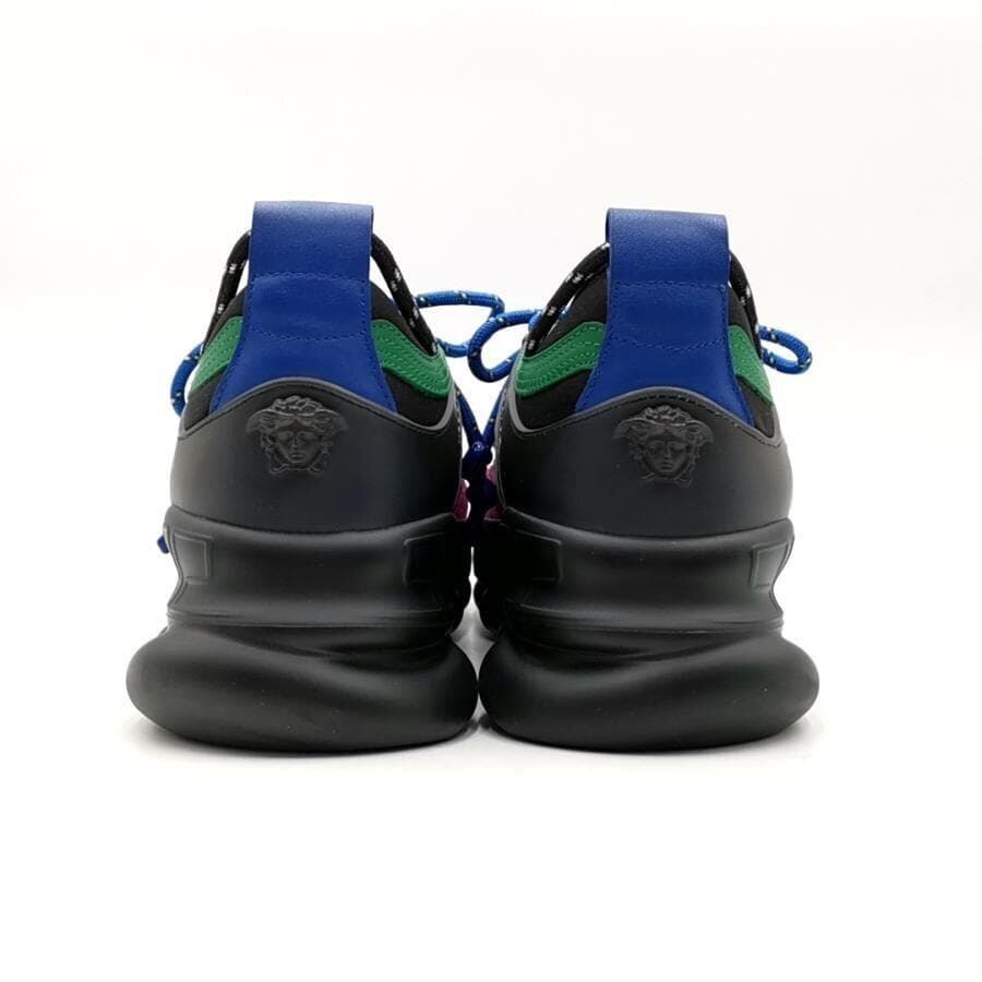 ・送料無料 超美品 ヴェルサーチ VERSACE スニーカー 靴 シューズ チェーンリアクション ローカット レースアップ 伊製 イタリア製 41 25.5cm-26cm相当黒 ブラック系 メンズ