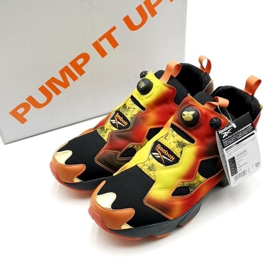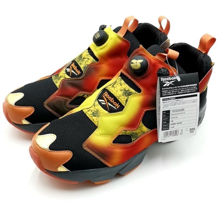 ・送料無料 超美品 B'z 稲葉浩志 リーボック Reebok スニーカー ランニングシューズ 靴 シューズ インスタポンプフューリー 100224285 INSTAPUMP FURY 94 MAGMA 30cm 黒赤黄 メンズ