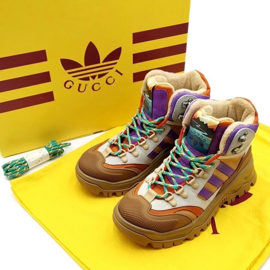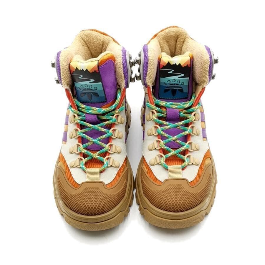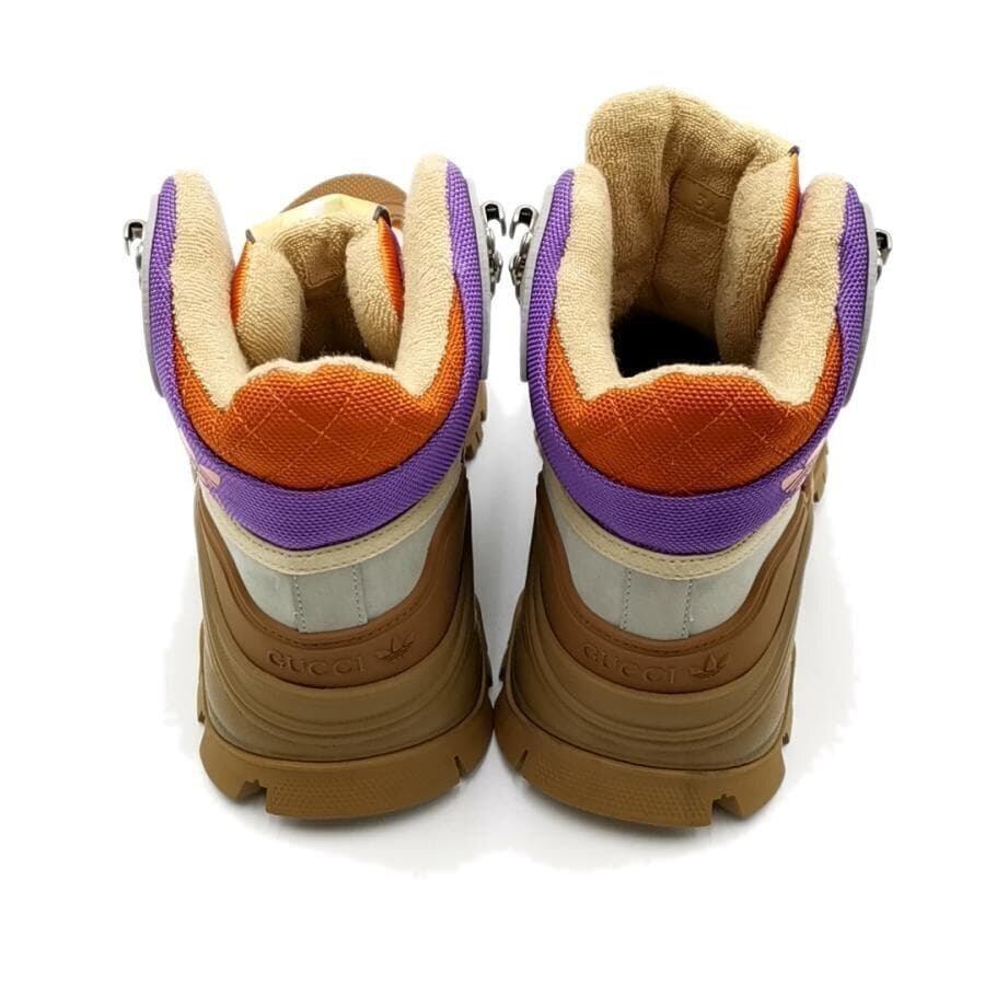 ・送料無料 超美品 グッチ アディダス GUCCI adidas トレッキングシューズ スニーカー ブーツ 靴 シューズ 721394 FAAW 59762 レースアップ ハイカット 伊製 イタリア製 36 23cm相当 茶 ブラウン系 レディース