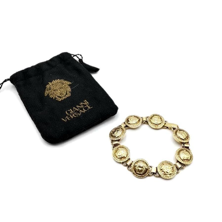 ・送料無料 美品 ジャンニヴェルサーチ ヴェルサーチェ GIANNI VERSACE ブレスレット バングル アクセサリー 小物 メデューサ 伊製 イタリア製 ゴールド系 レディース