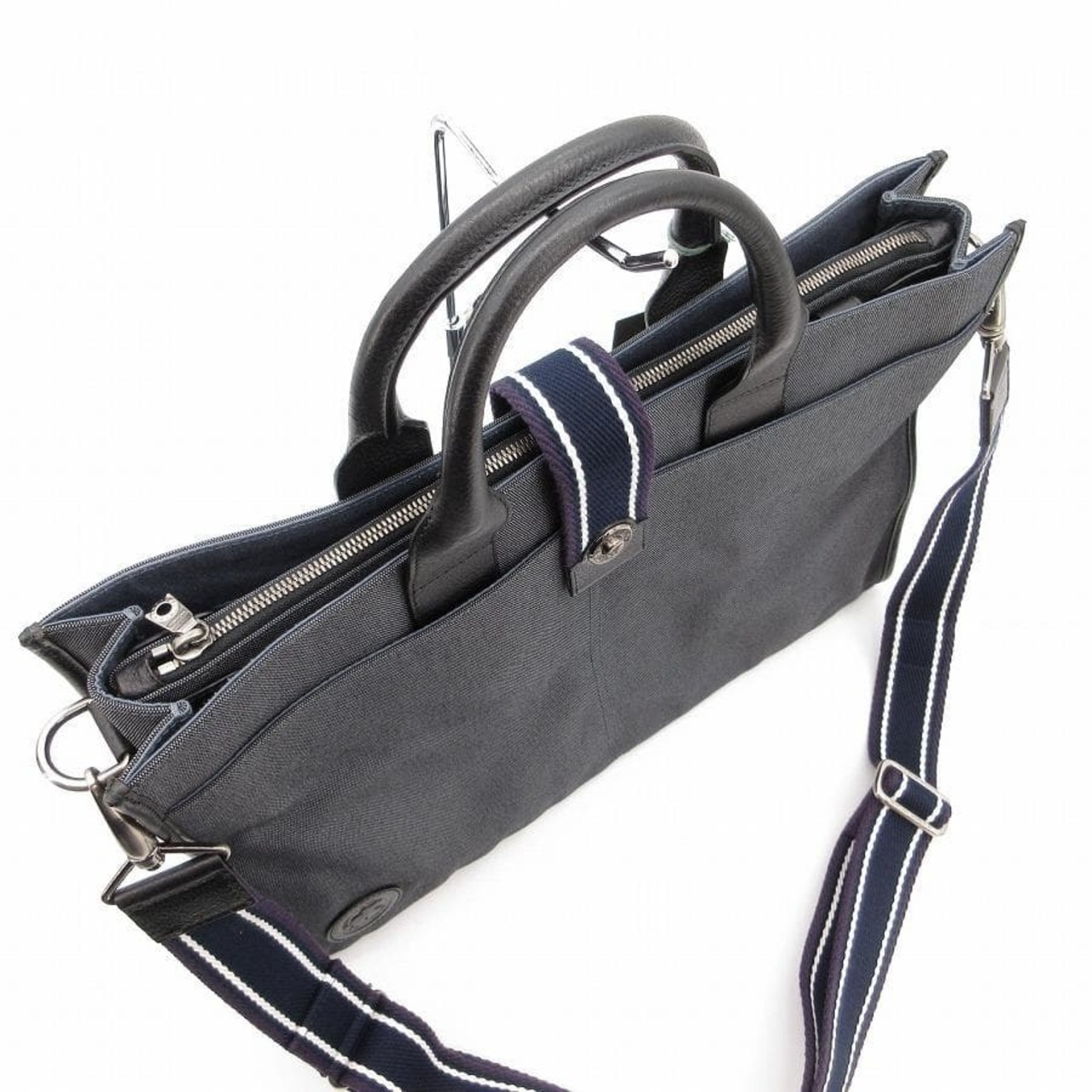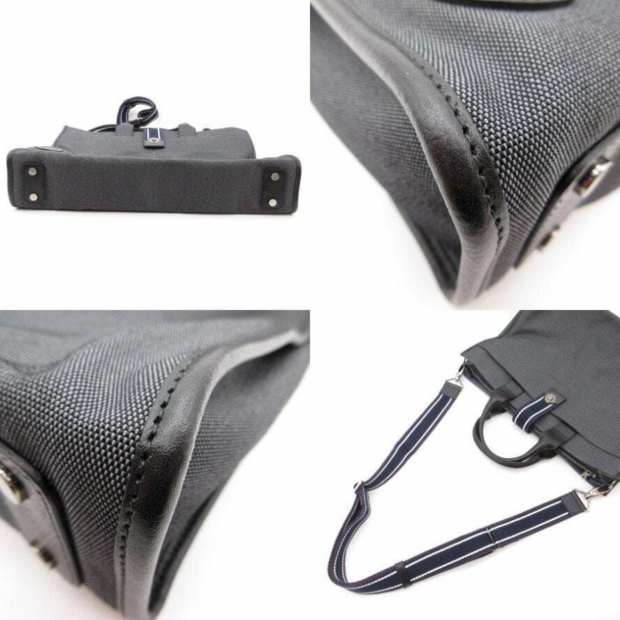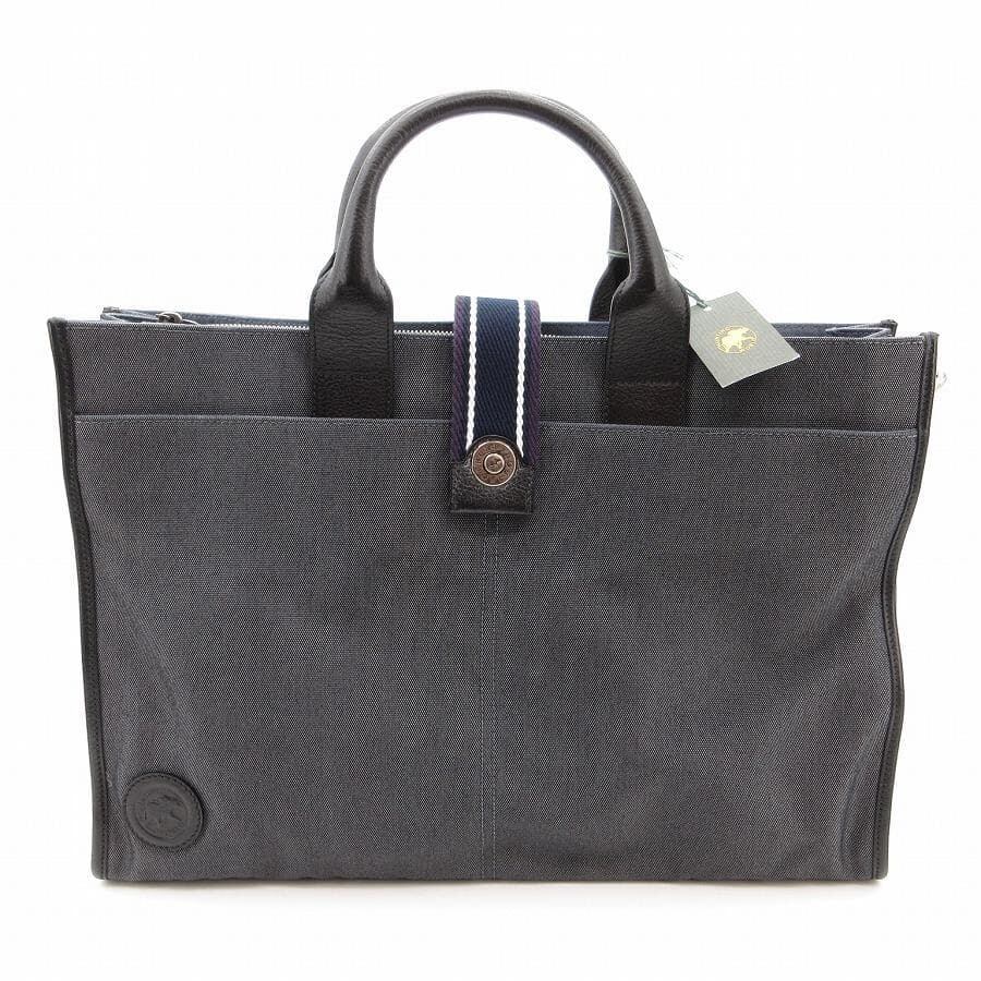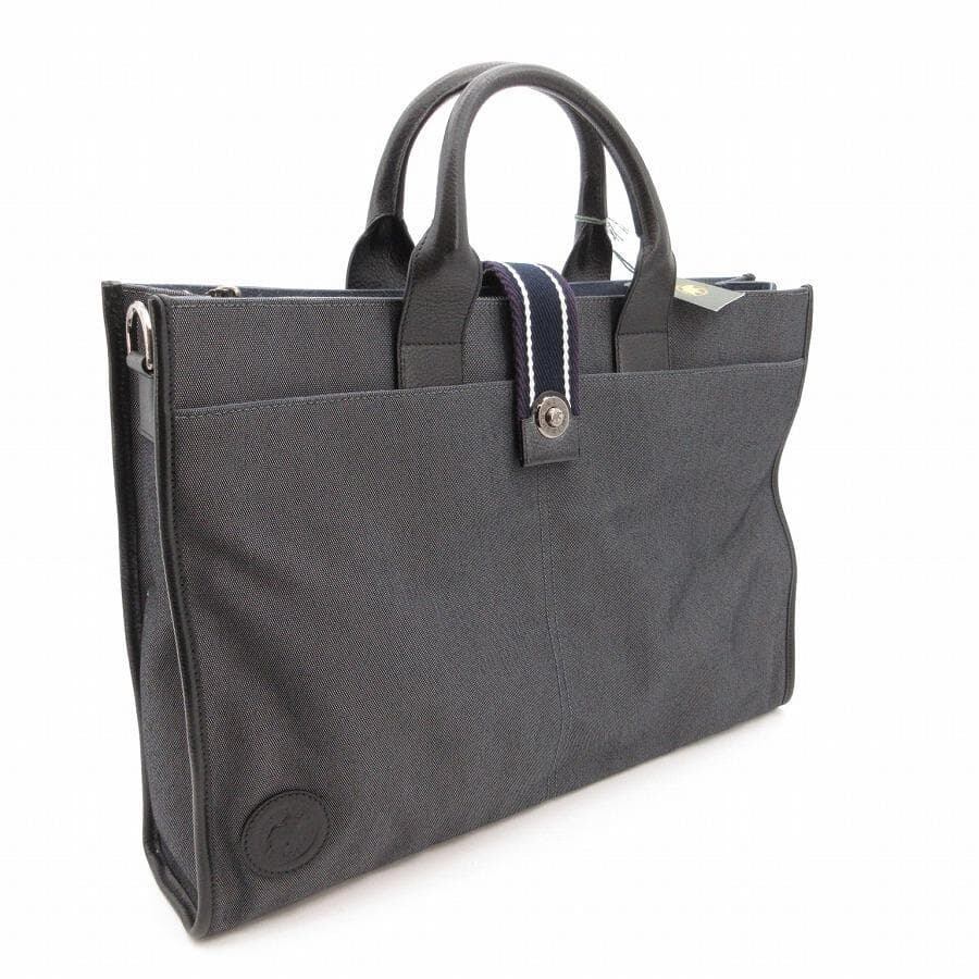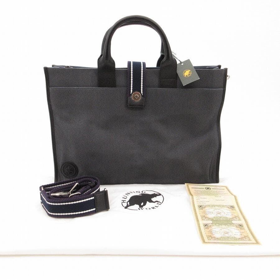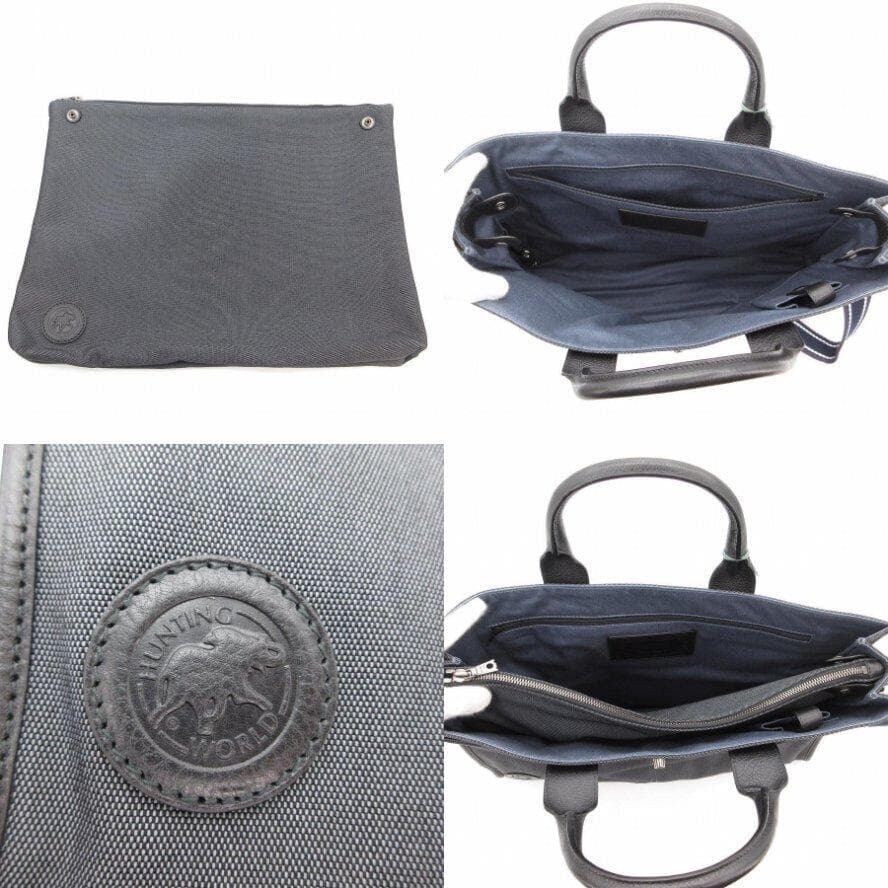 ・送料無料 超美品 ハンティングワールド HUNTING WORLD ショルダーバッグ ハンドバッグ トートバッグ ビジネスバッグ ブリーフケース 書類カバン 鞄 斜め掛け 手提げ 2WAY 071004 キャンバス 伊製 イタリア製 チャコール系 メンズ