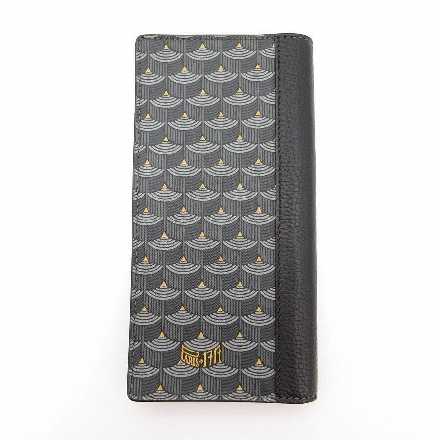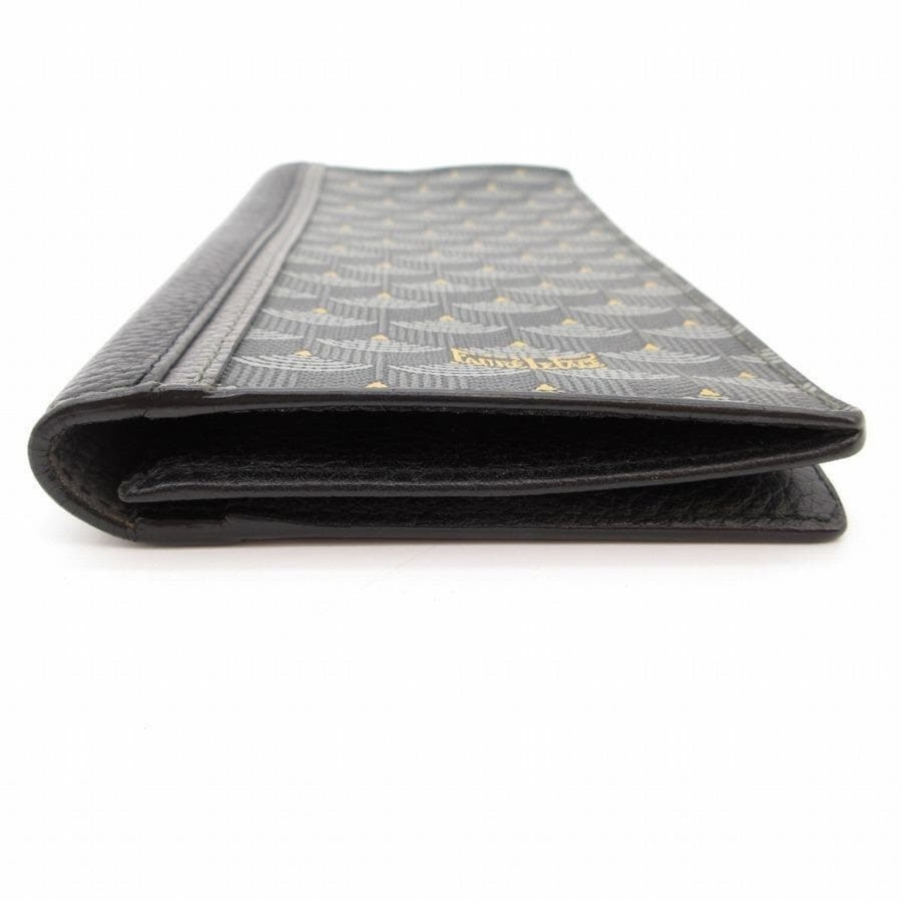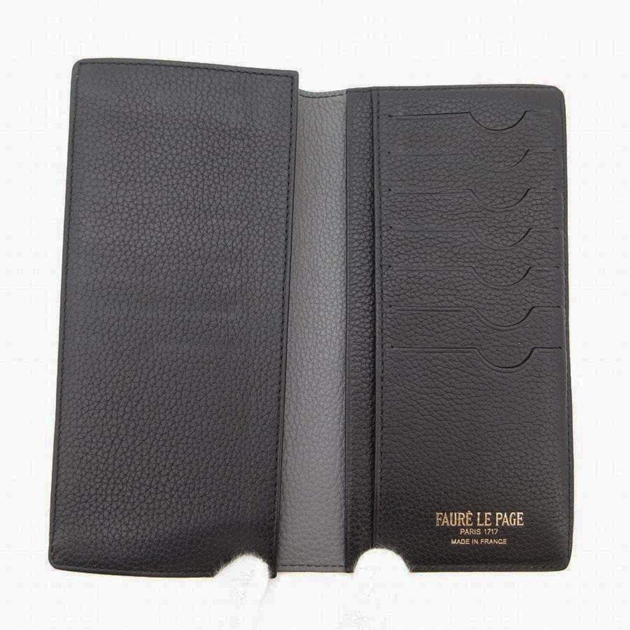 ・送料無料 超美品 フォレルパージュ FAURE LE PAGE 長財布 札入れ 二つ折り ロングウォレット エカイユ柄 レザー 本革 仏製 フランス製 黒 ブラック系 メンズ