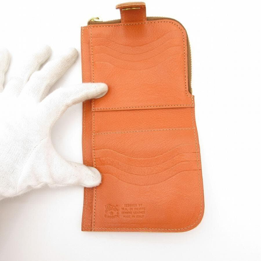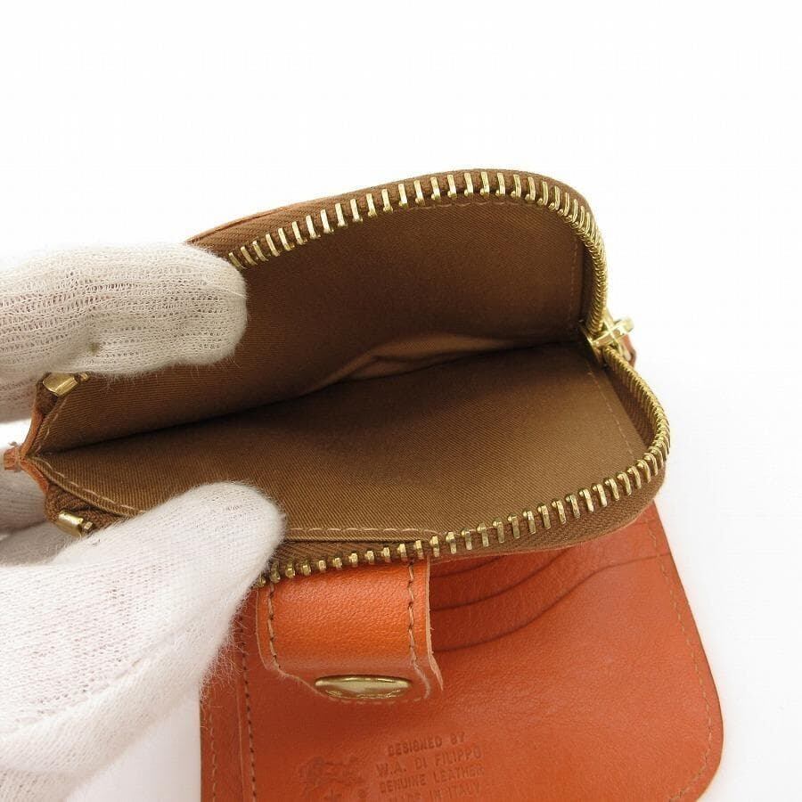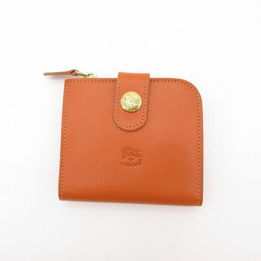 ・送料無料 超美品 イルビゾンテ IL BISONTE 財布 二つ折り L字ファスナー コンパクトウォレット ミニ財布 54424-0-4640 C0890-P レザー 伊製 イタリア製 茶 ブラウン系 レディース