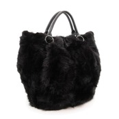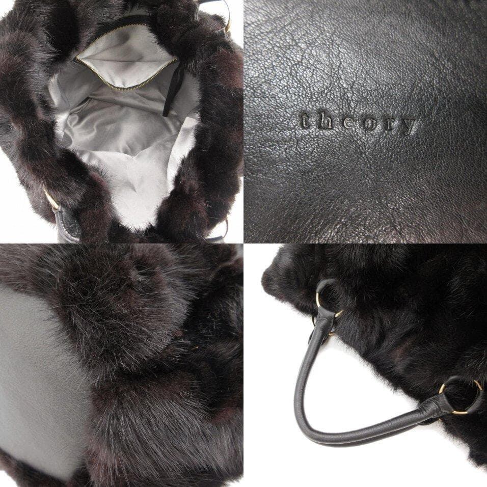 ・送料無料 超美品 セオリー Theory ハンドバッグ トートバッグ 鞄 手提げ ファー 黒 ブラック系 ダークブラウン系 レディース