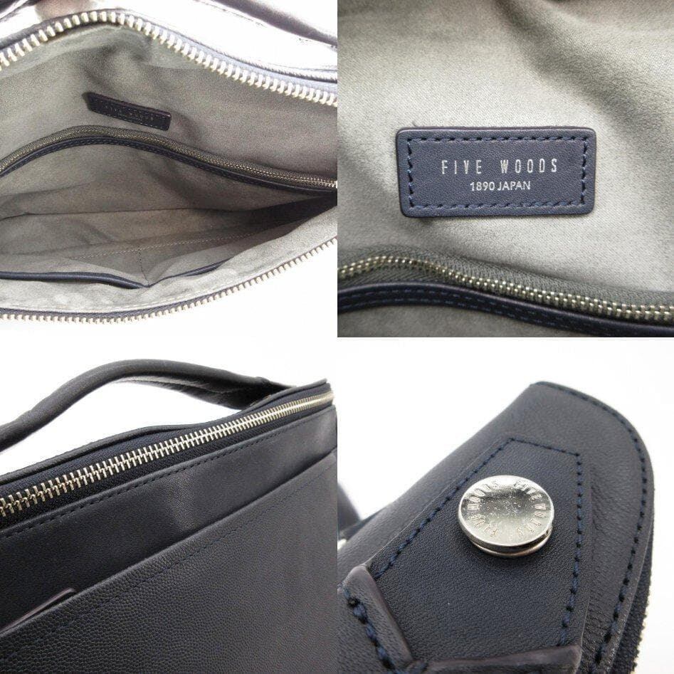 ・送料無料 超美品 ファイブウッズ FIVE WOODS ハンドバッグ ショルダーバッグ 鞄 レザー 本革 2WAY 紺 ネイビー系 メンズ
