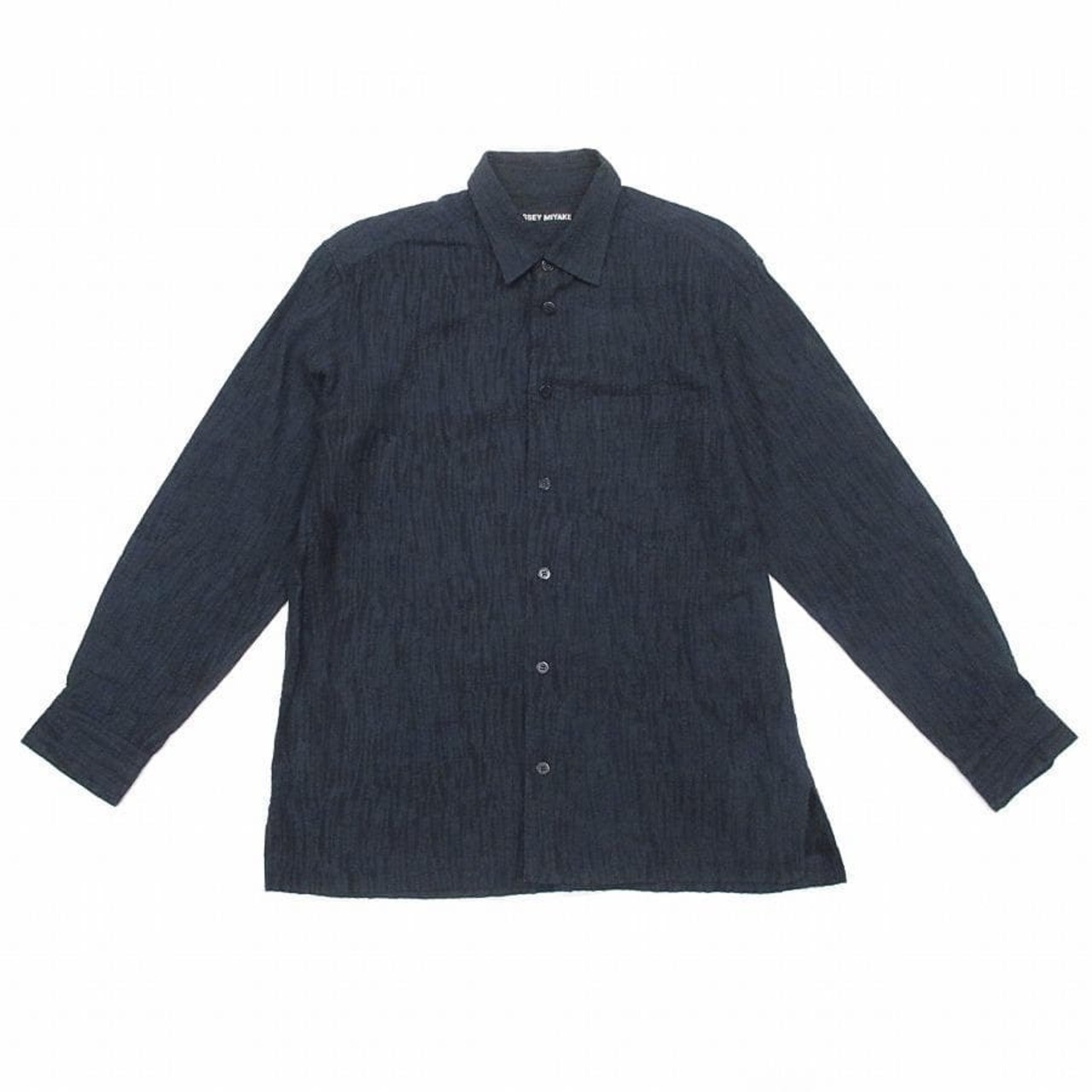 ・送料無料 美品 イッセイミヤケ ISSEY MIYAKE シャツ 長袖 綿 コットン100% ME03FJ053 1 黒 ブラック系 メンズ