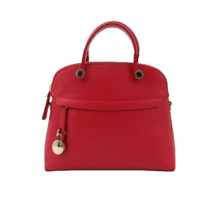 ・送料無料 超美品 フルラ FURLA ハンドバッグ ショルダーバッグ 鞄 手提げ 斜め掛け PIPER パイパー レザー 本革 伊製 イタリア製 赤 レッド系 レディース