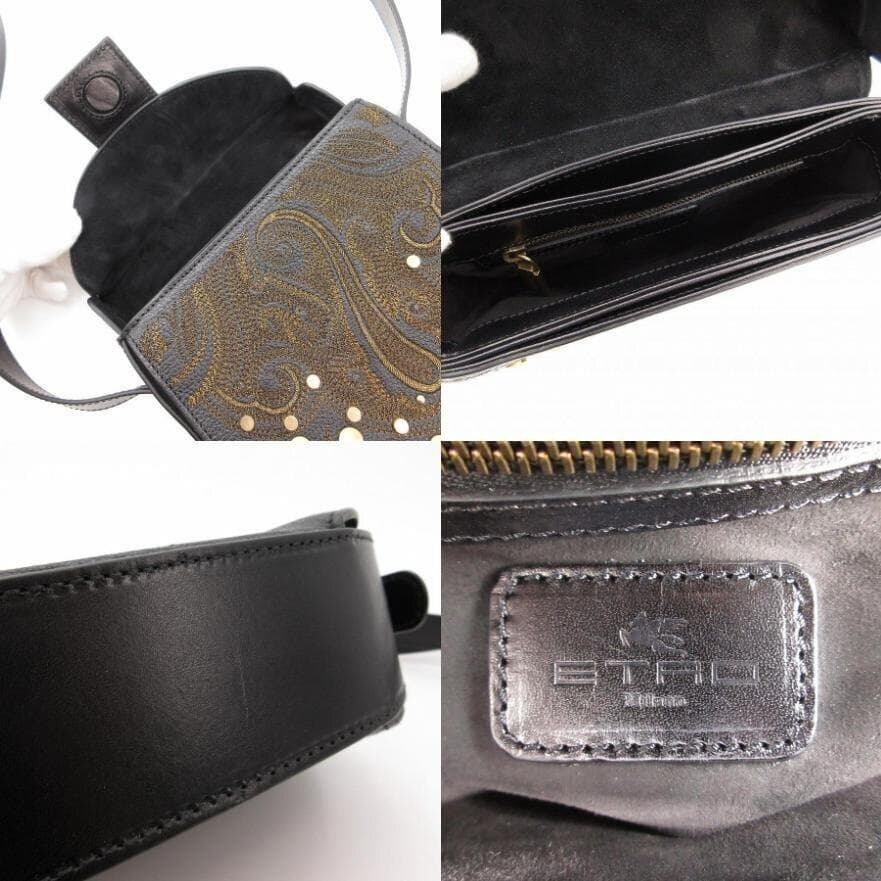 ・送料無料 超美品 エトロ ETRO ショルダーバッグ ポシェット 鞄 斜め掛け 1H215-2049-25-02-16 レザー 本革 黒 ブラック系 レディース