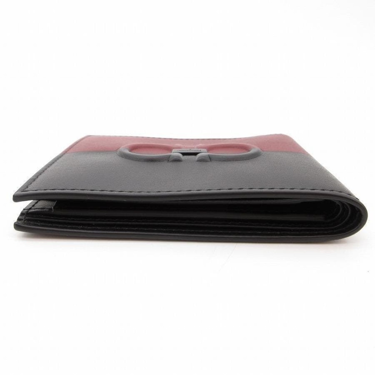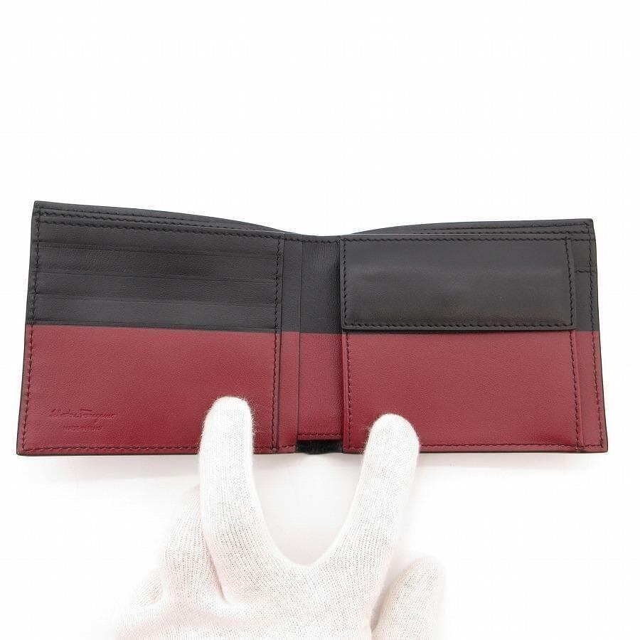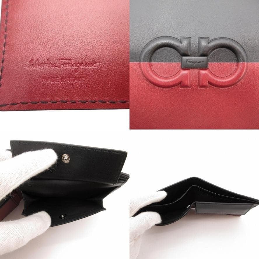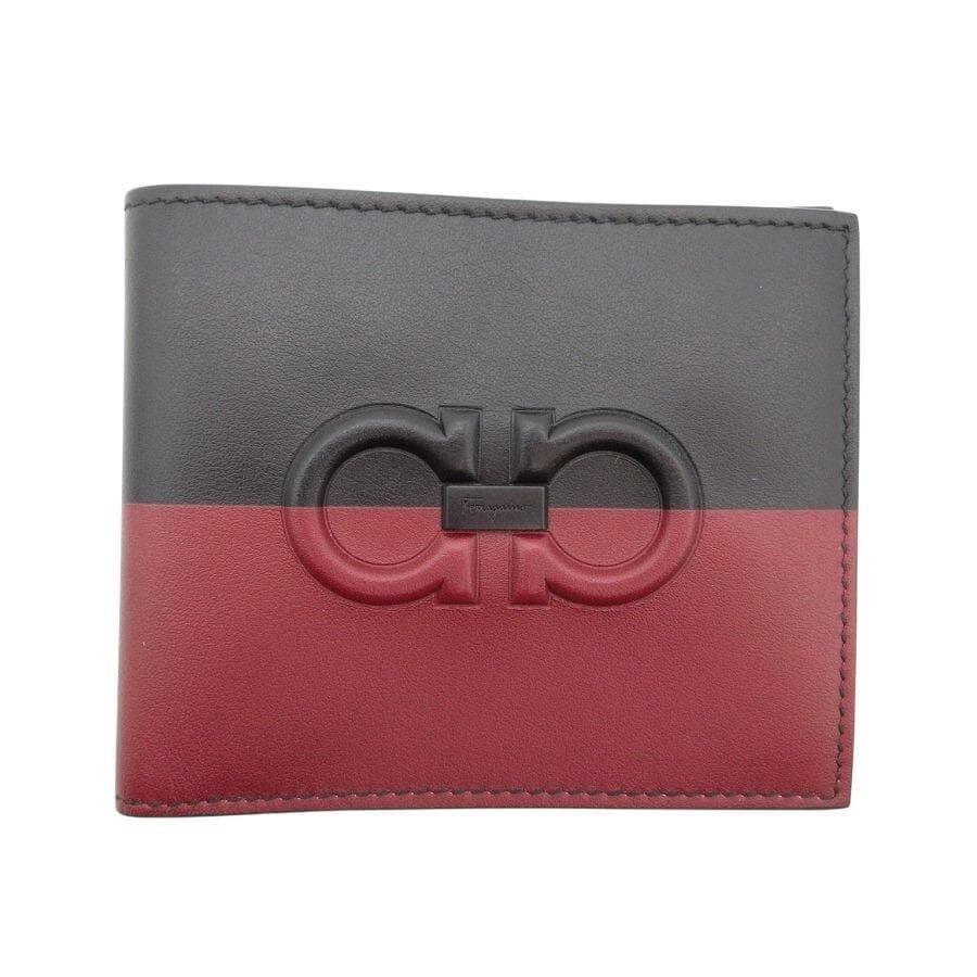 ・送料無料 超美品 サルヴァトーレフェラガモ Salvatore Ferragamo 財布 二つ折り ミディアムウォレット ガンチーニ レザー 本革 ツートン バイカラー 伊製 イタリア製 黒 ブラック系 赤 レッド系 メンズ レディース