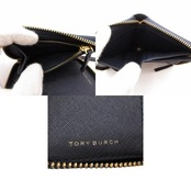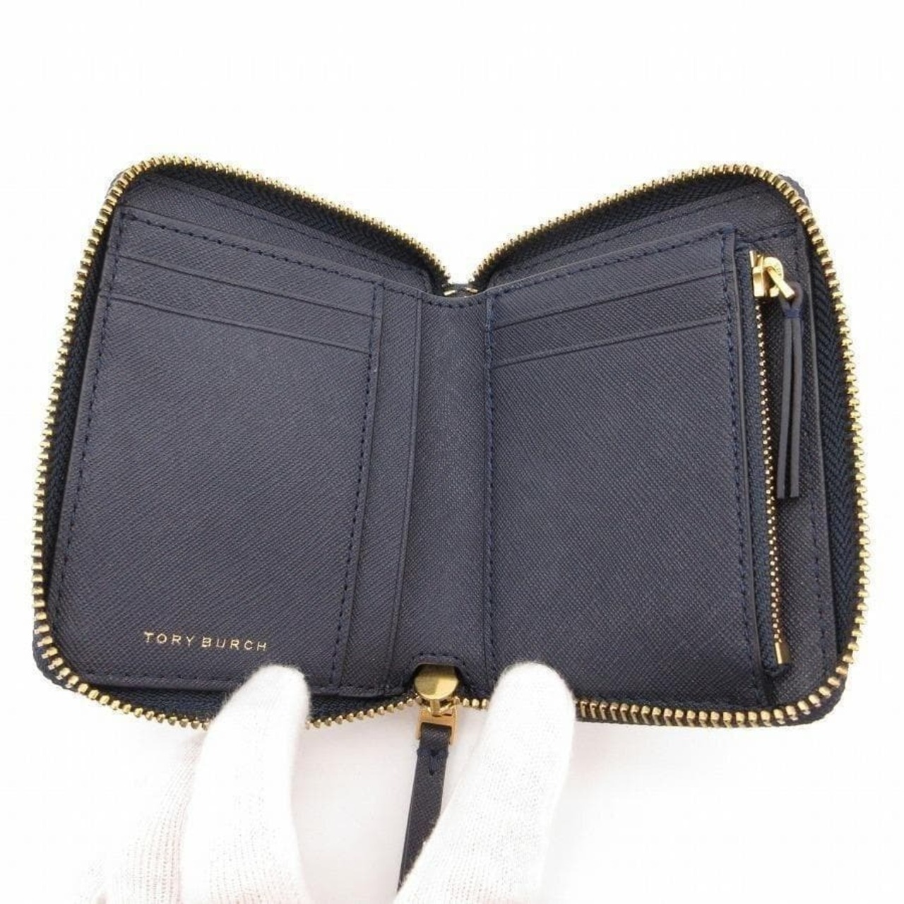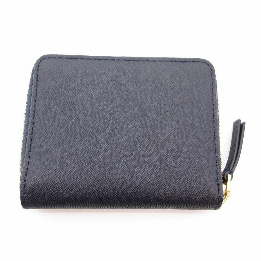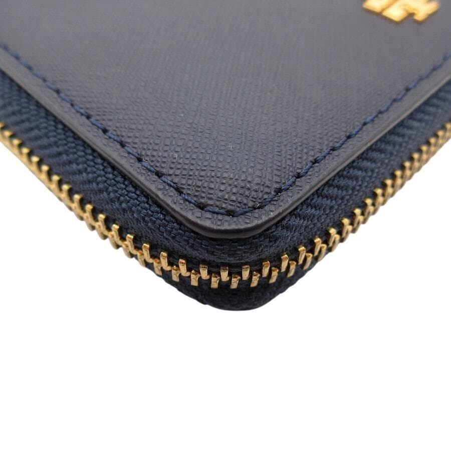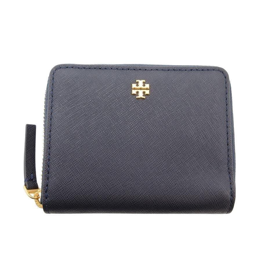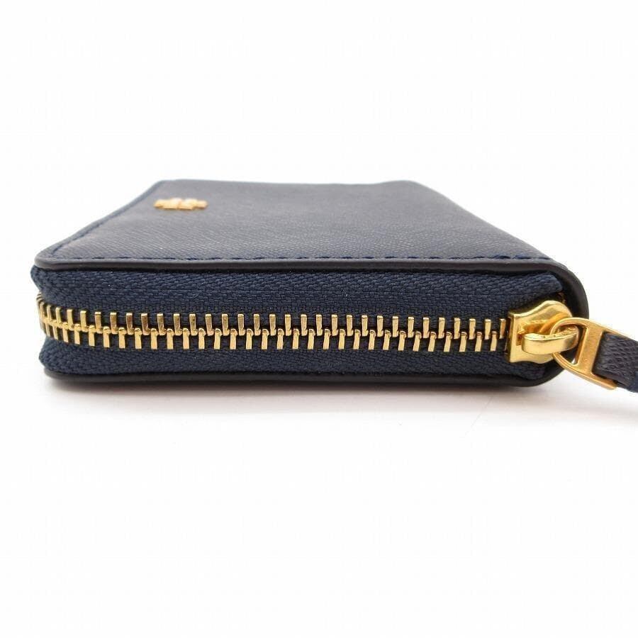 ・送料無料 超美品 トリーバーチ TORY BURCH 財布 二つ折り ラウンドジップ ラウンドファスナー レザー 本革 コンパクトウォレット ミニ財布 紺 ネイビー系 レディース