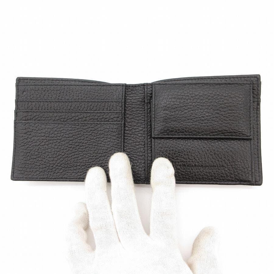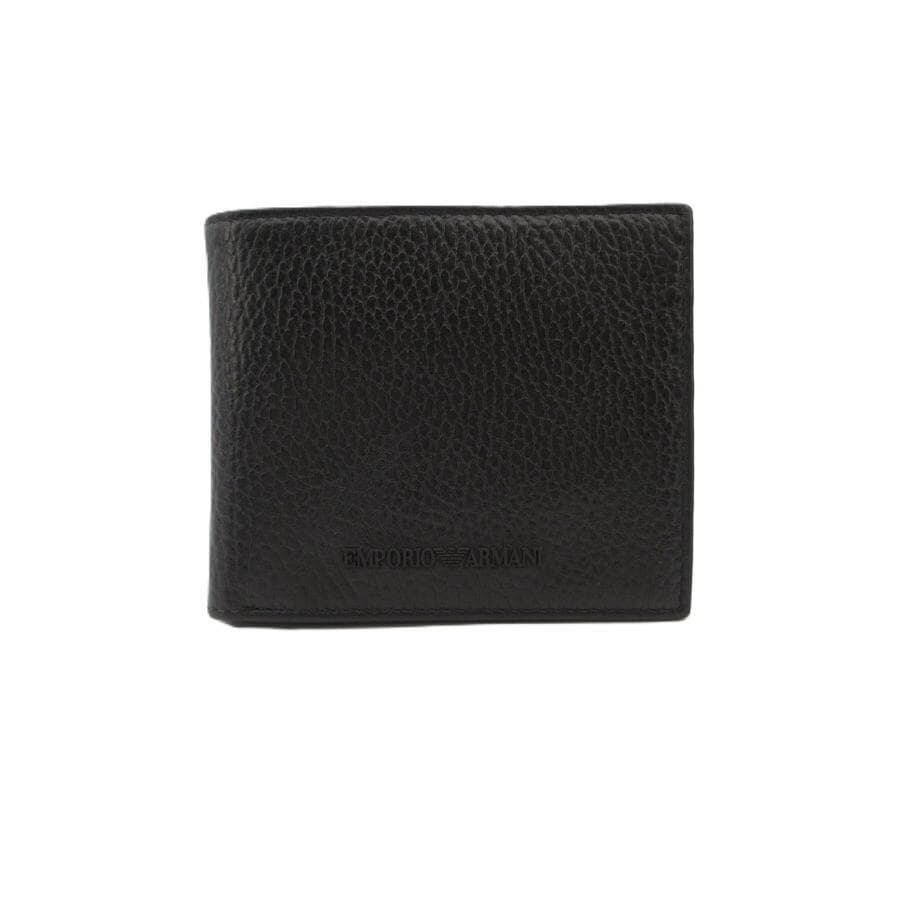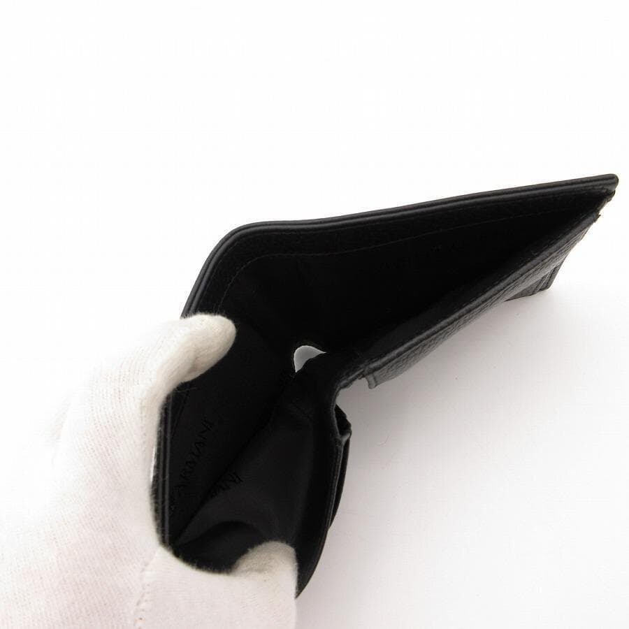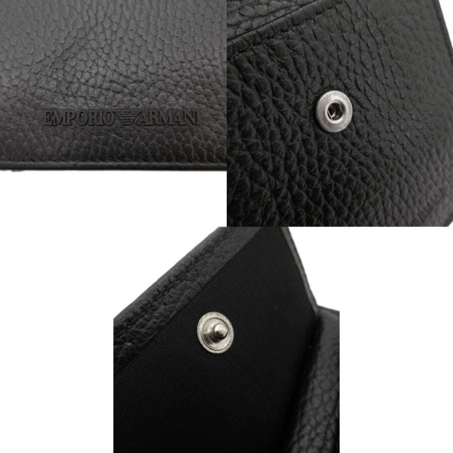 ・送料無料 美品 エンポリオアルマーニ EMPORIO ARMANI 財布 二つ折り ミディアムウォレット レザー 本革 黒 ブラック系 メンズ