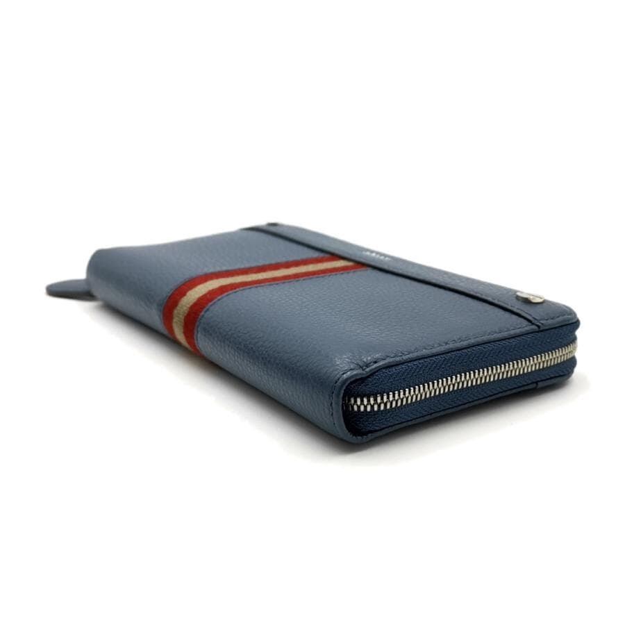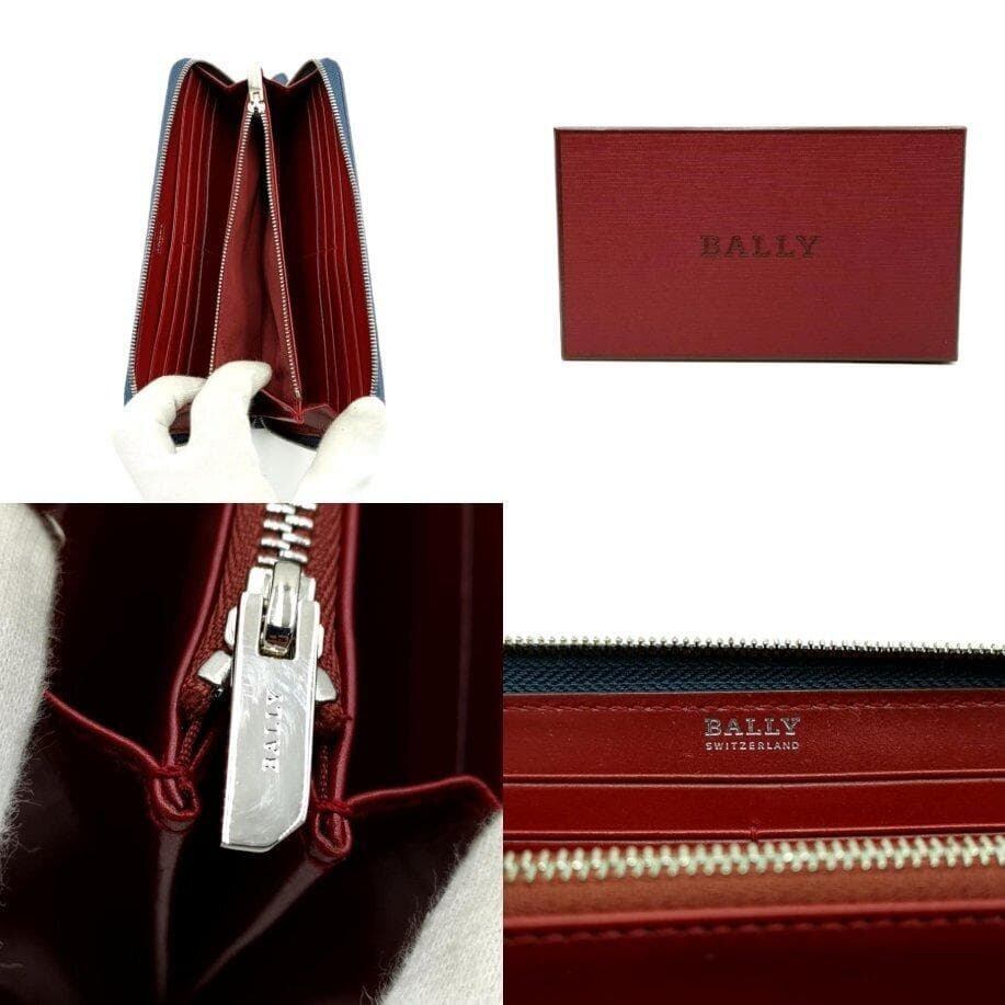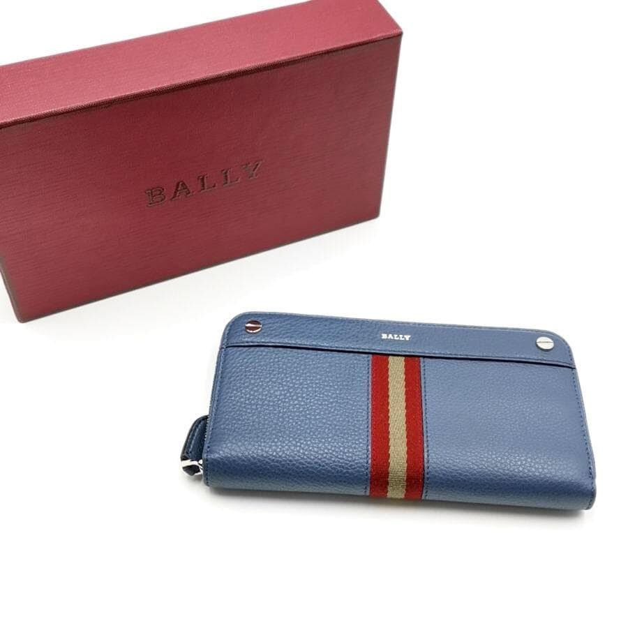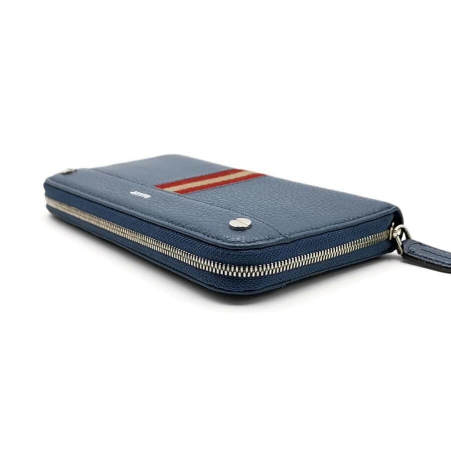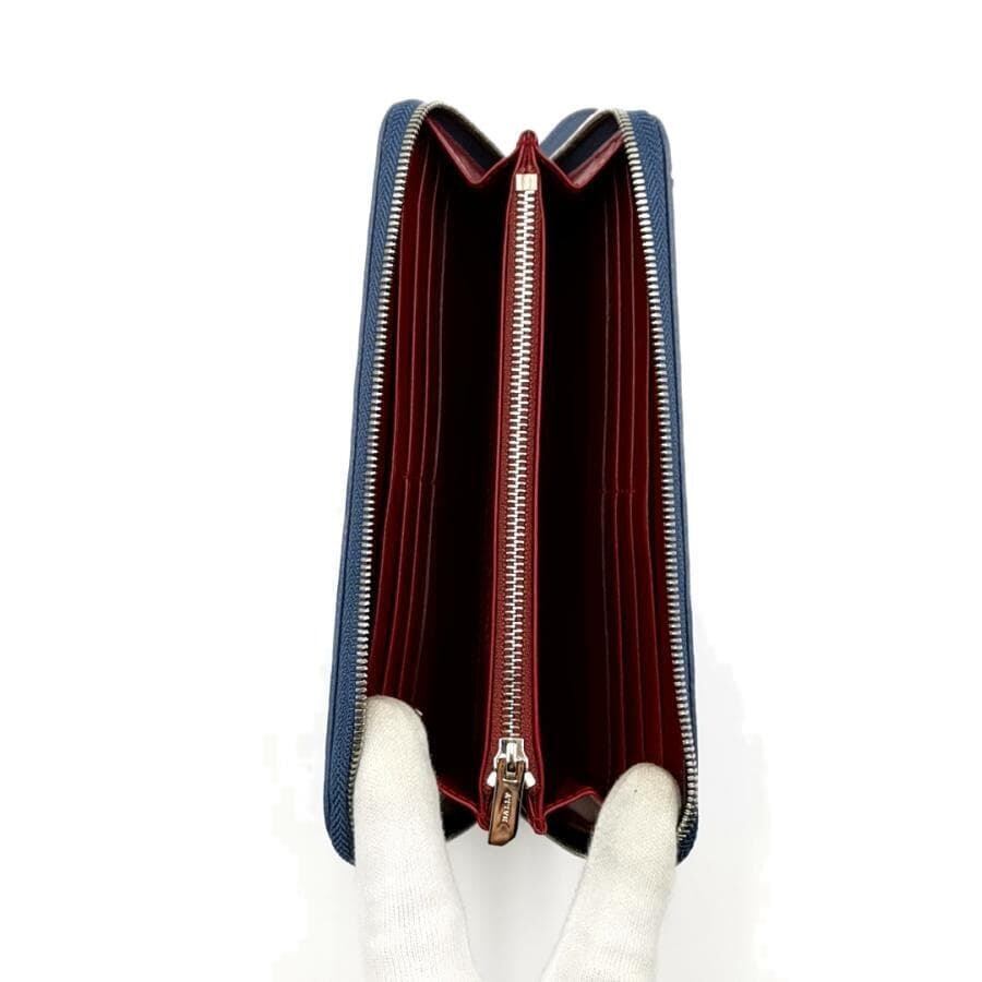 ・送料無料 超美品 バリー BALLY 長財布 財布 ラウンドファスナー ラウンドジップ ロングウォレット RIBBON リボン 青 ブルー系 メンズ レディース