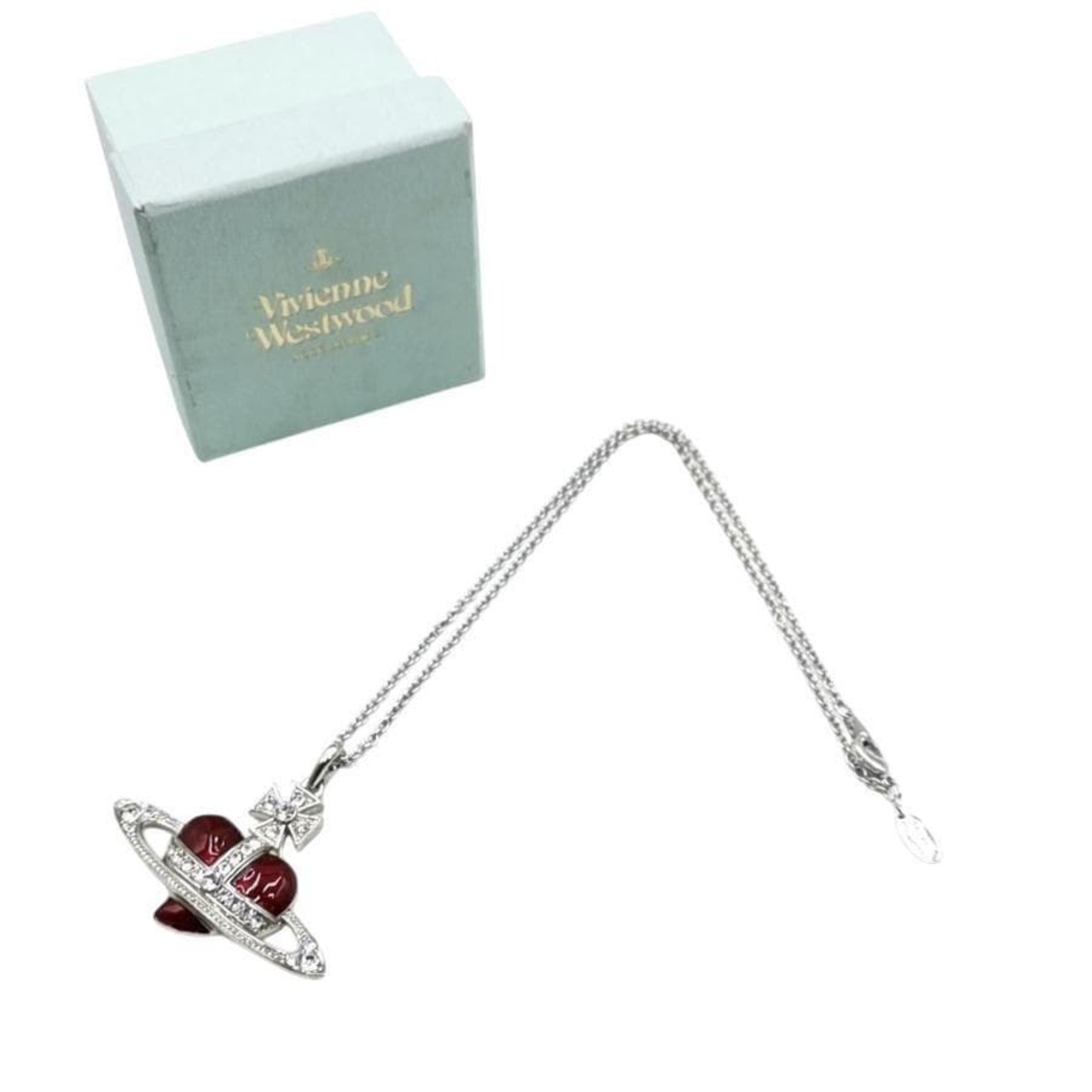 ・送料無料 超美品 ヴィヴィアンウエストウッド Vivienne Westwood ネックレス ペンダント アクセサリー 小物 630203BM-02P383 ディアマンテ ハート オーブ ラインストーン 赤 レッド系 シルバー系 レディース