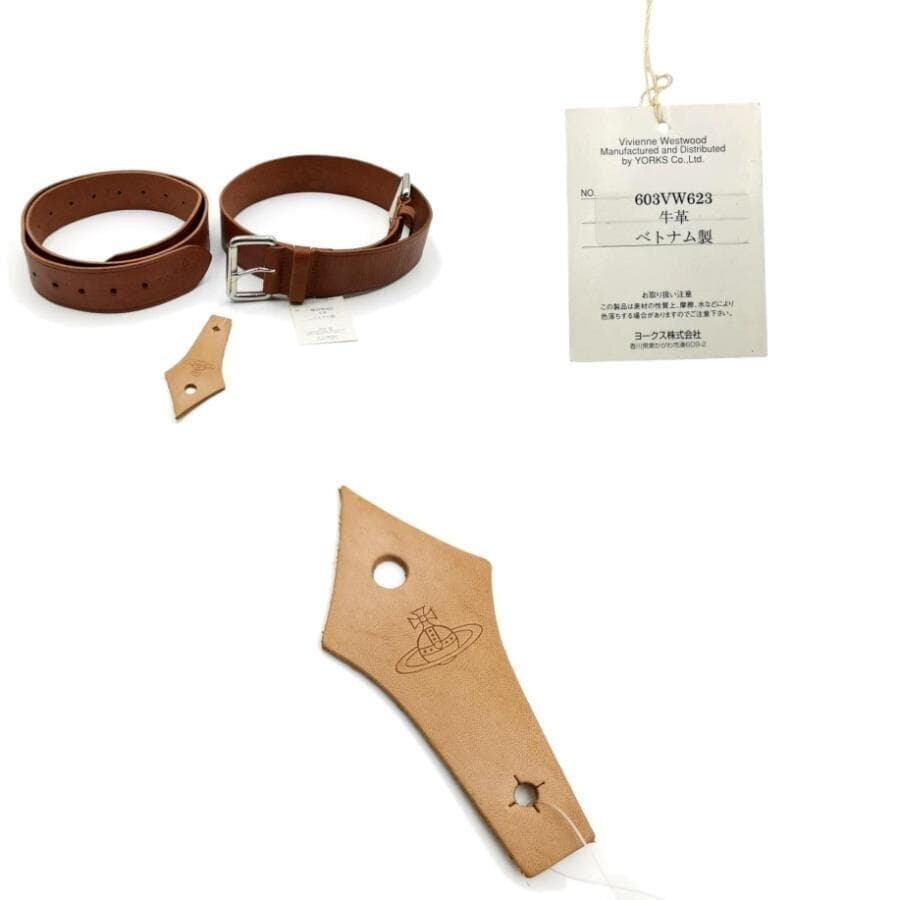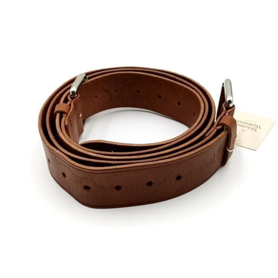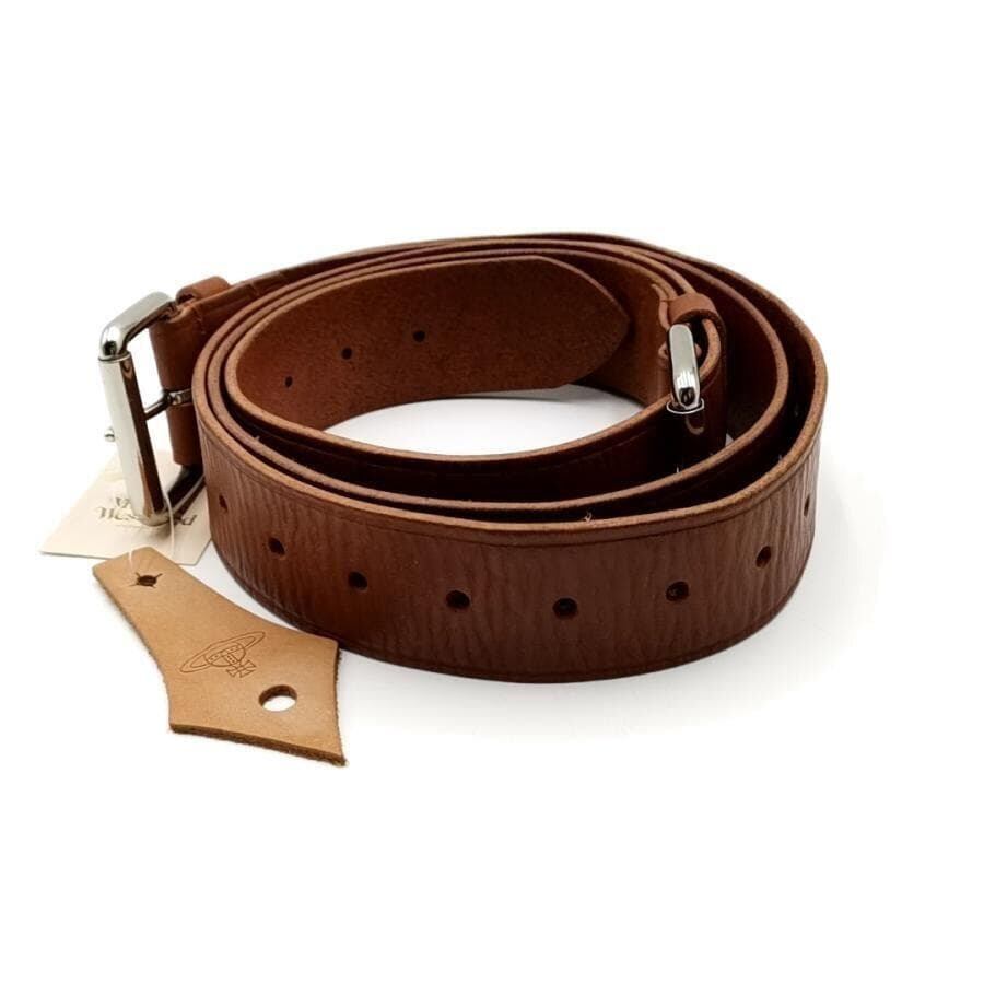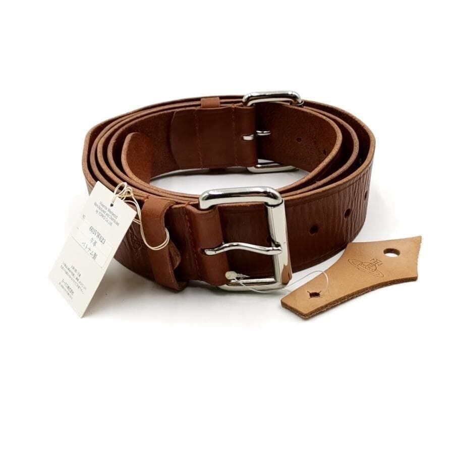 ・送料無料 美品 ヴィヴィアンウエストウッド Vivienne Westwood ベルト ダブルバックル レザー 本革 603VW623 茶 ブラウン系 メンズ