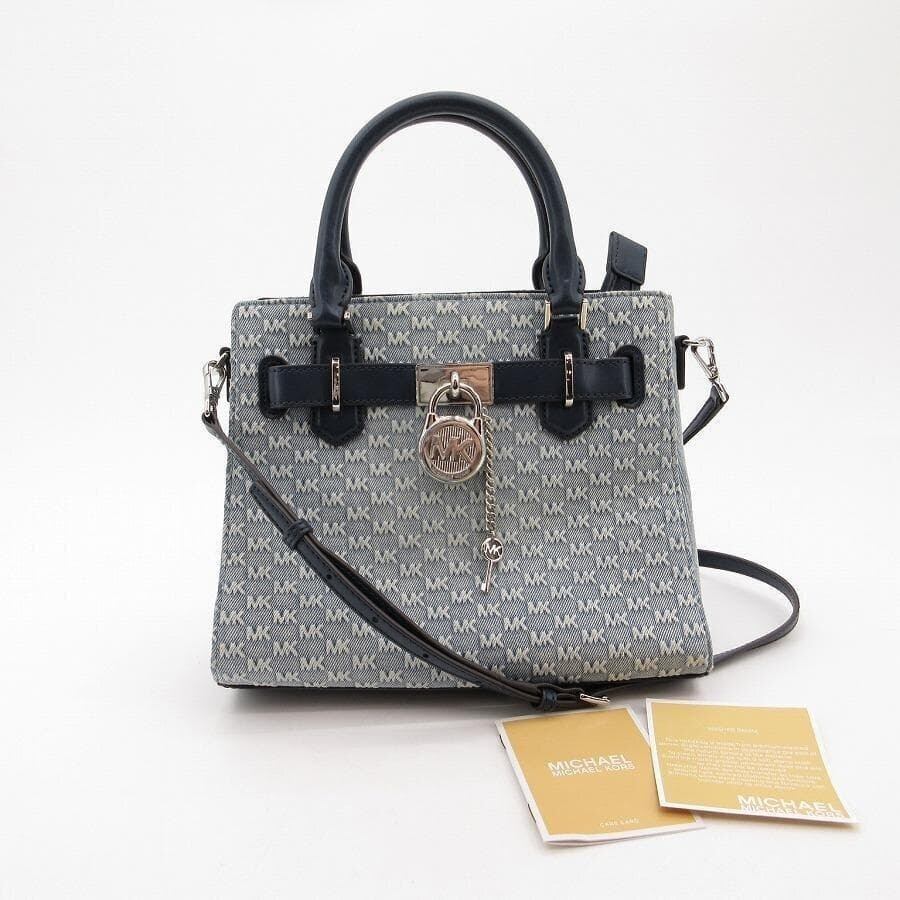 ・送料無料 美品 マイケルコース MICHAEL KORS ハンドバッグ トートバッグ ショルダーバッグ 鞄 手提げ 斜め掛け HAMILTON ハミルトン サッチェル スモール デニム 35T4SHMS1C 2WAY 青 ブルー系 レディース