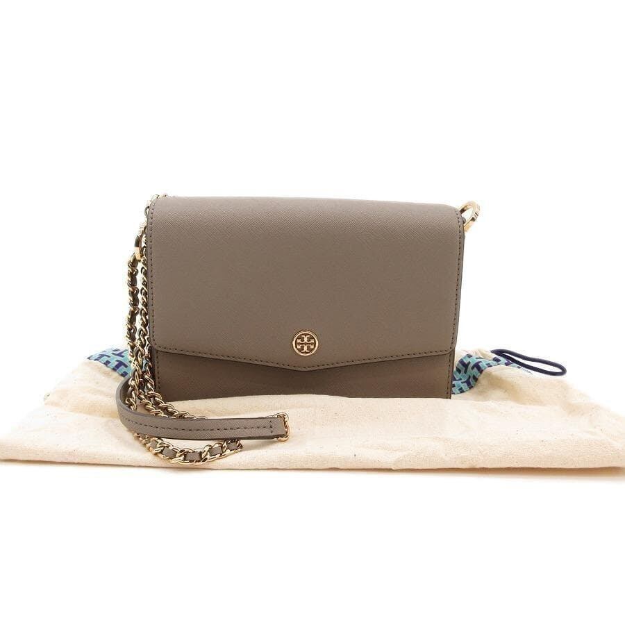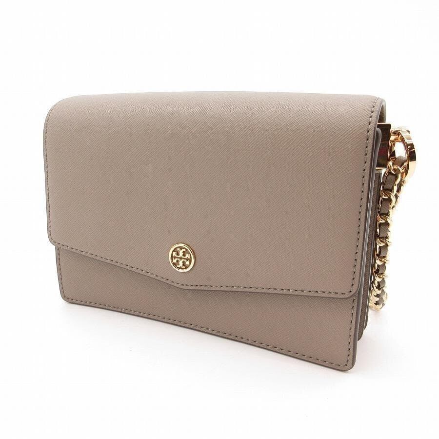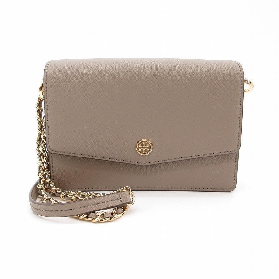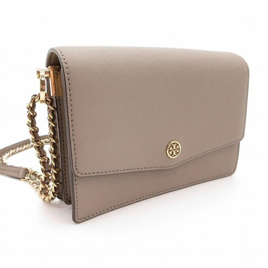 ・送料無料 超美品 トリーバーチ TORY BURCH ショルダーバッグ ポシェット 鞄 斜め掛け チェーン ROBINSON ロビンソン コンバーチブル レザー 本革 グレージュ系 レディース
