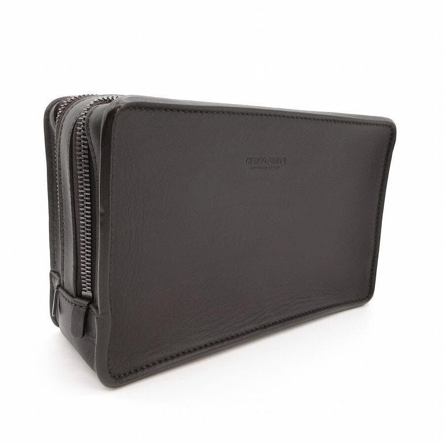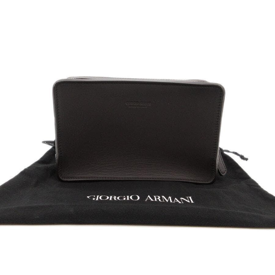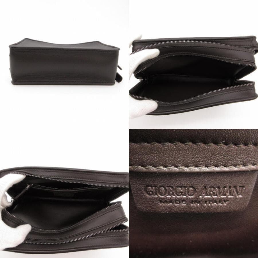 ・送料無料 超美品 ジョルジオアルマーニ GIORGIO ARMANI セカンドバッグ クラッチバッグ ビジネスバッグ 鞄 手持ち レザー 本革 ダブルジップ 伊製 イタリア製 ダークブラウン系 メンズ