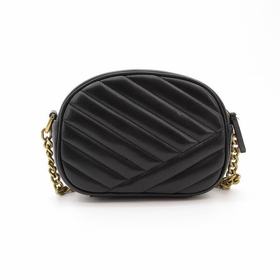 ・送料無料 美品 トリーバーチ TORYBURCH ショルダーバッグ ポシェット 鞄 斜め掛け チェーン Kira Chevron キラ シェブロン レザー 本革 黒 ブラック系 レディース