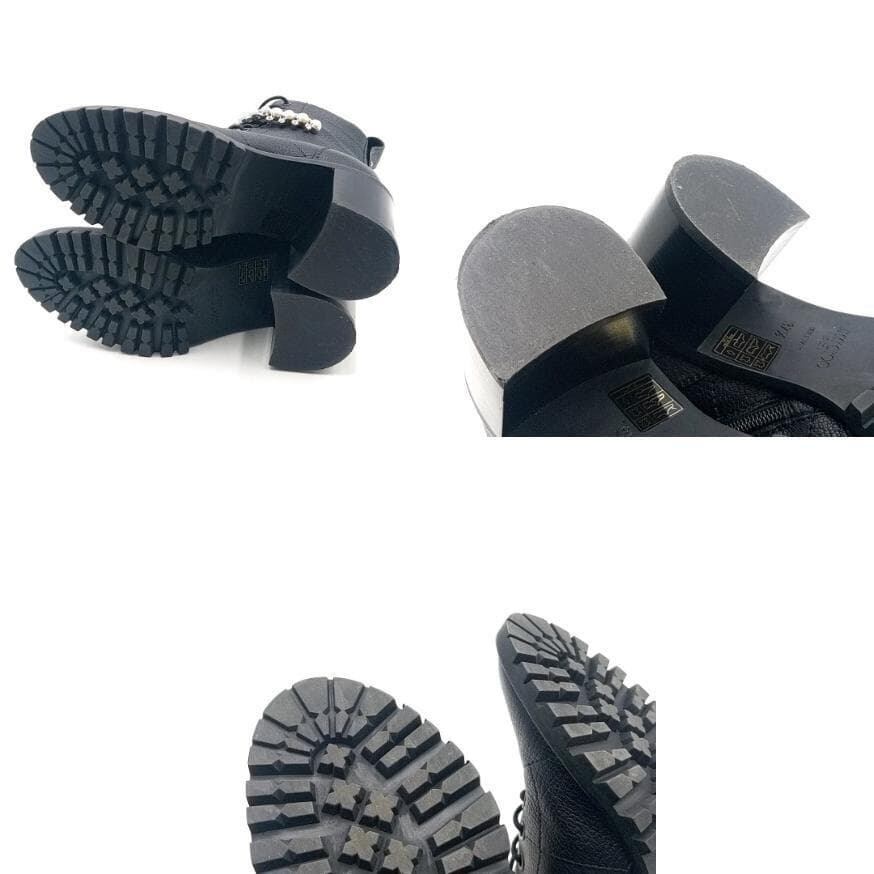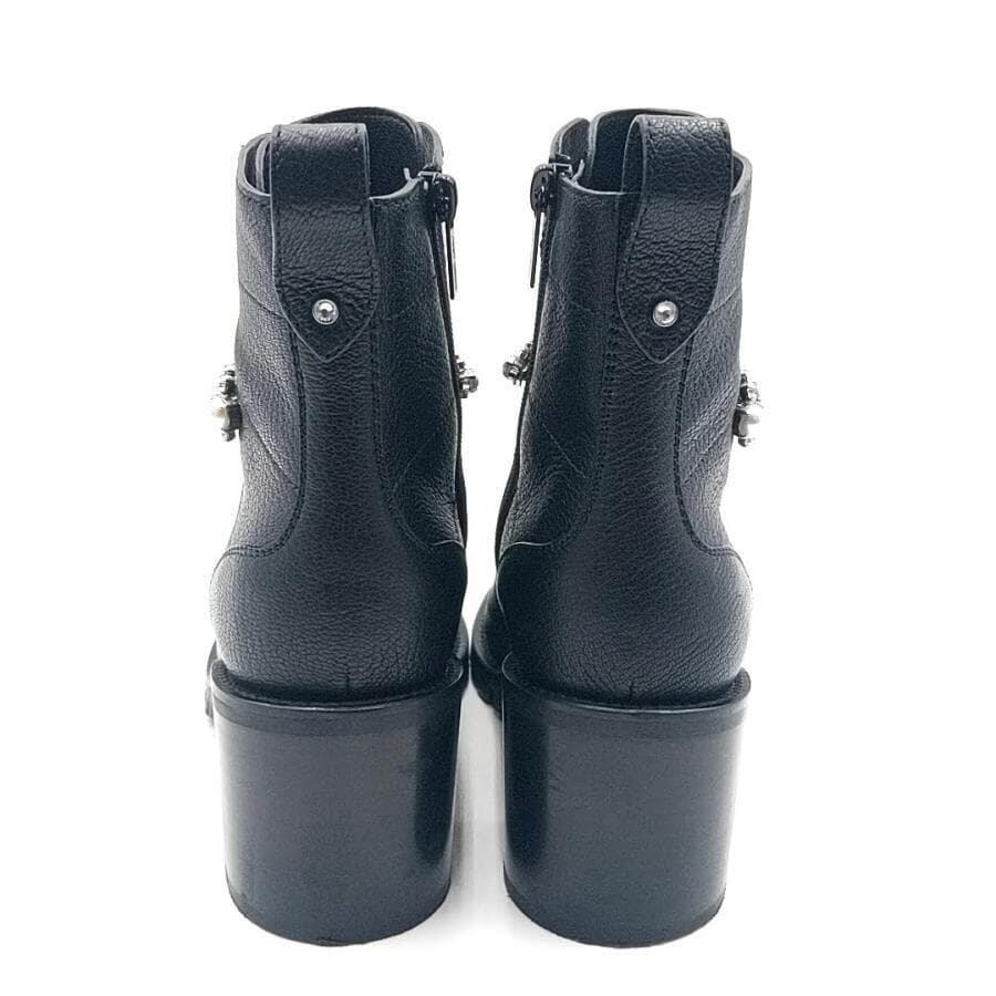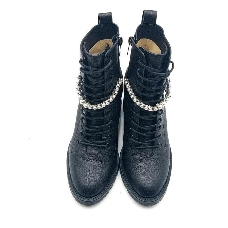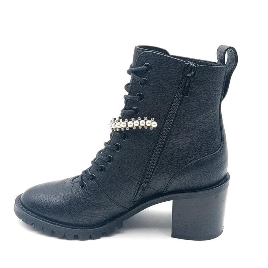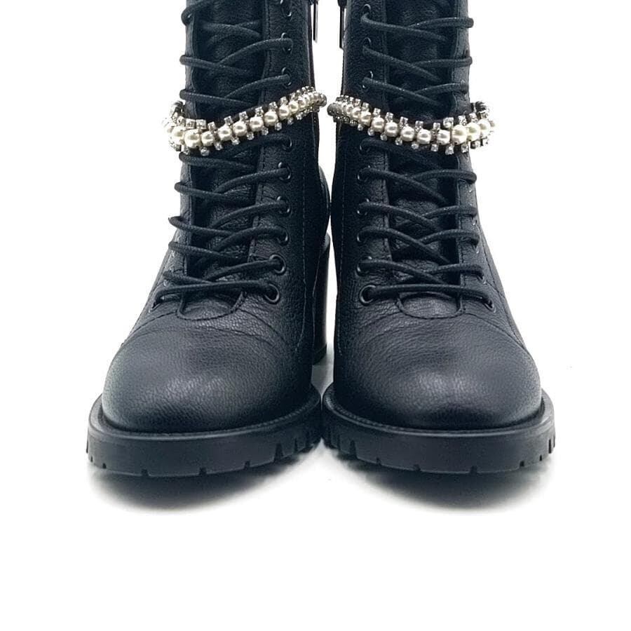 ・送料無料 美品 ジミーチュウ JIMMY CHOO ショートブーツ CRUZ65ブーツ 靴 シューズ ビジュー パール レースアップ レザー 本革 サイドジップ 伊製 イタリア製 37 1/2 24.5cm相当 黒 ブラック系 レディース