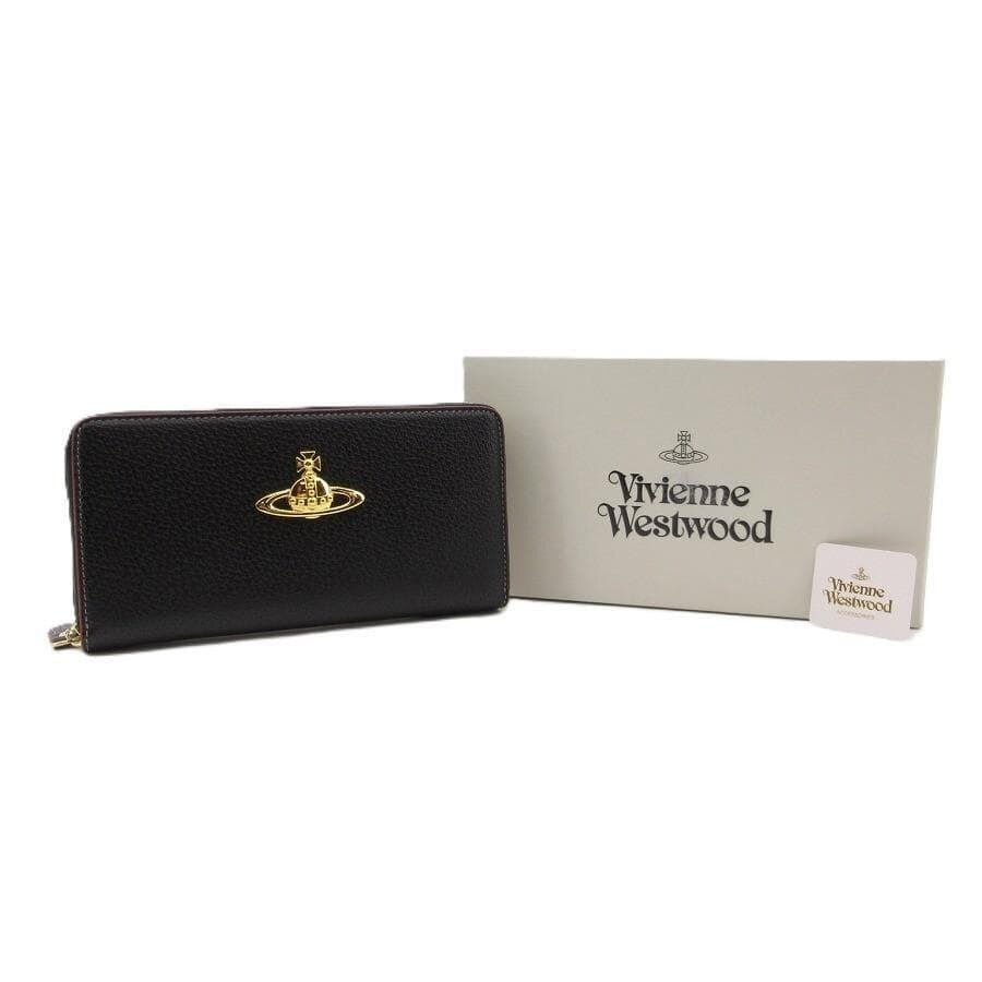 ・送料無料 美品 ヴィヴィアンウエストウッド Vivienne Westwood 長財布 財布 ラウンドファスナー ラウンドジップ ロングウォレット レザー 本革 オーブ 黒 ブラック系 レディース