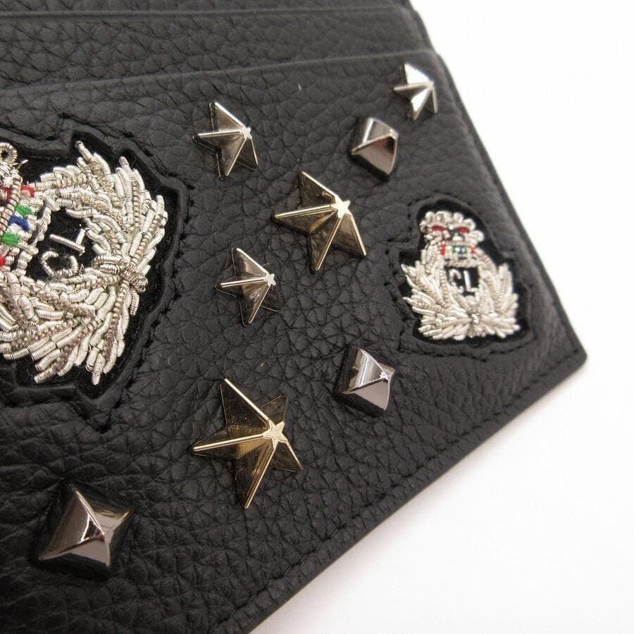 ・送料無料 超美品 クリスチャンルブタン Christian Louboutin カードケース 名刺入れ カード入れ スタッズ レザー 本革 マチなし 黒 ブラック系 レディース