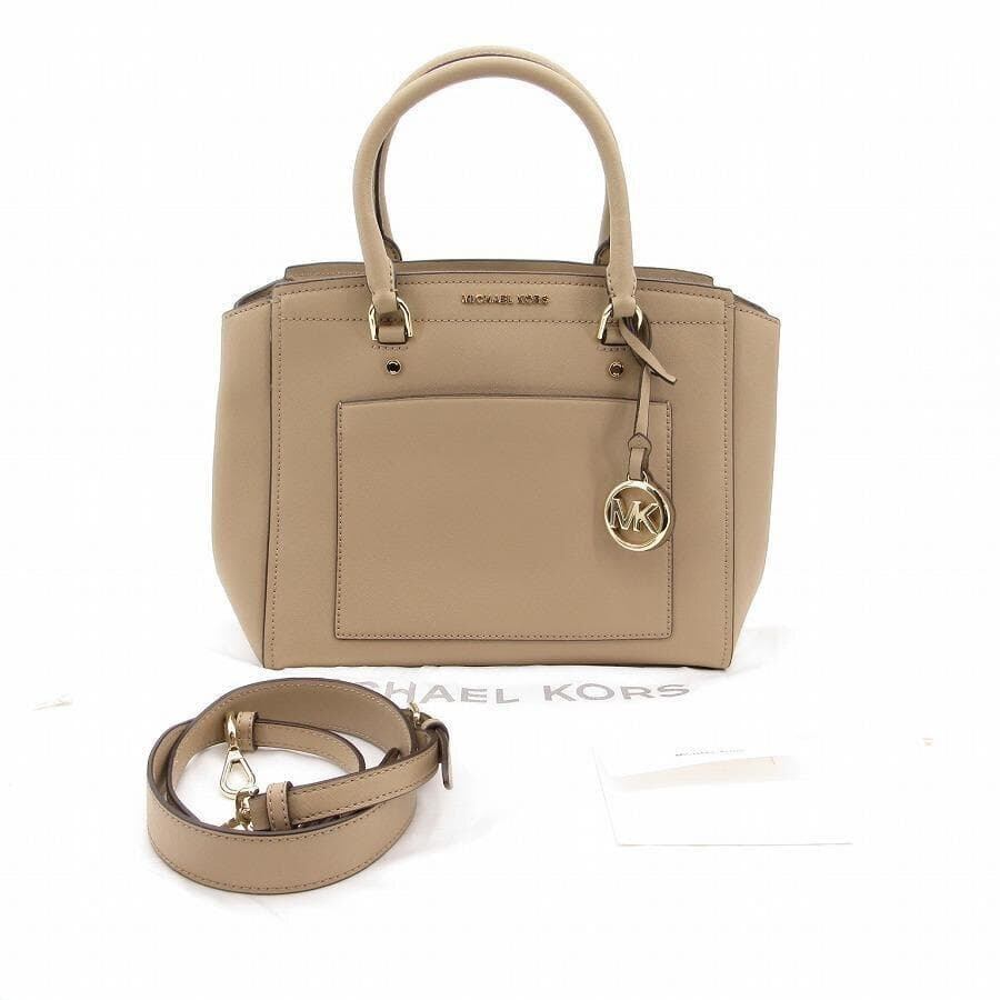 ・送料無料 美品 マイケルコース MICHAEL KORS ハンドバッグ トートバッグ ショルダーバッグ 鞄 手提げ 斜め掛け 30F9LP9S3L パーク ラージ サッチェル レザー 本革 2WAY ベージュ系 レディース