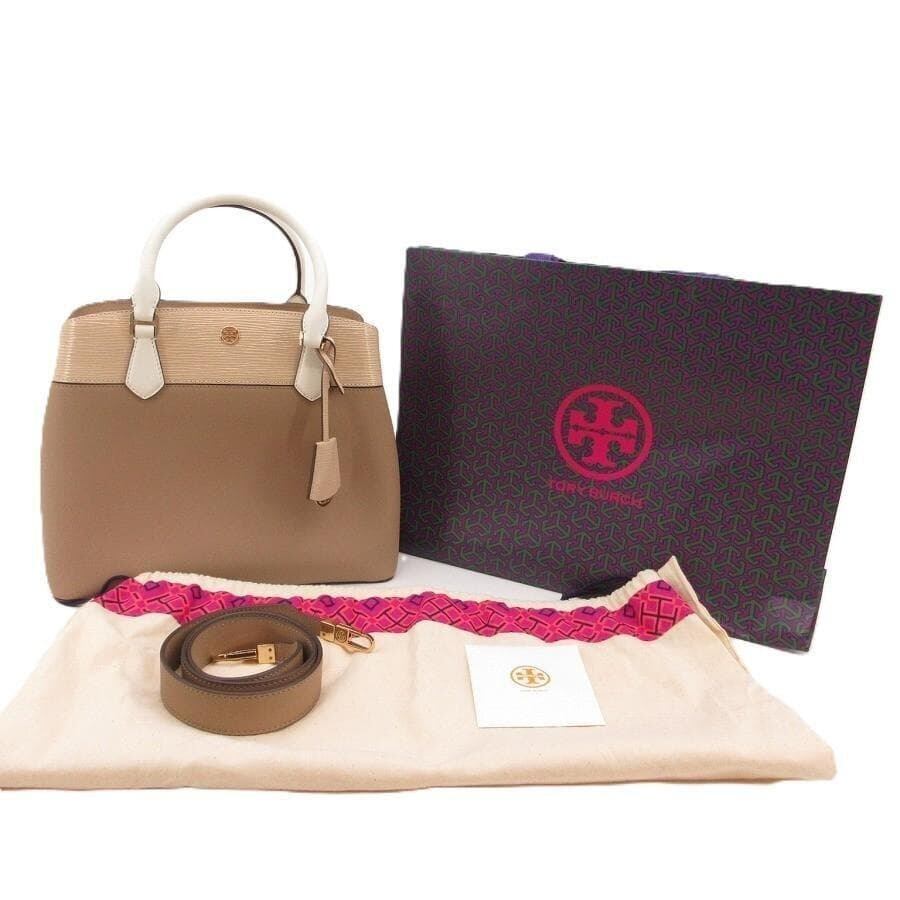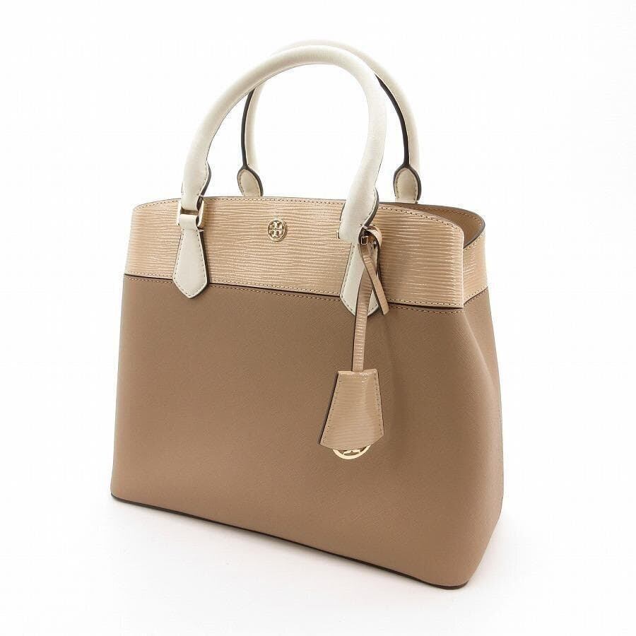 ・送料無料 超美品 トリーバーチ TORY BURCH トートバッグ ハンドバッグ ショルダーバッグ 鞄 手提げ 斜め掛け ロビンソン トリプルコンパートメント Robinson Triple Compartment 53790 レザー 本革 牛革 ベージュ系 レディース
