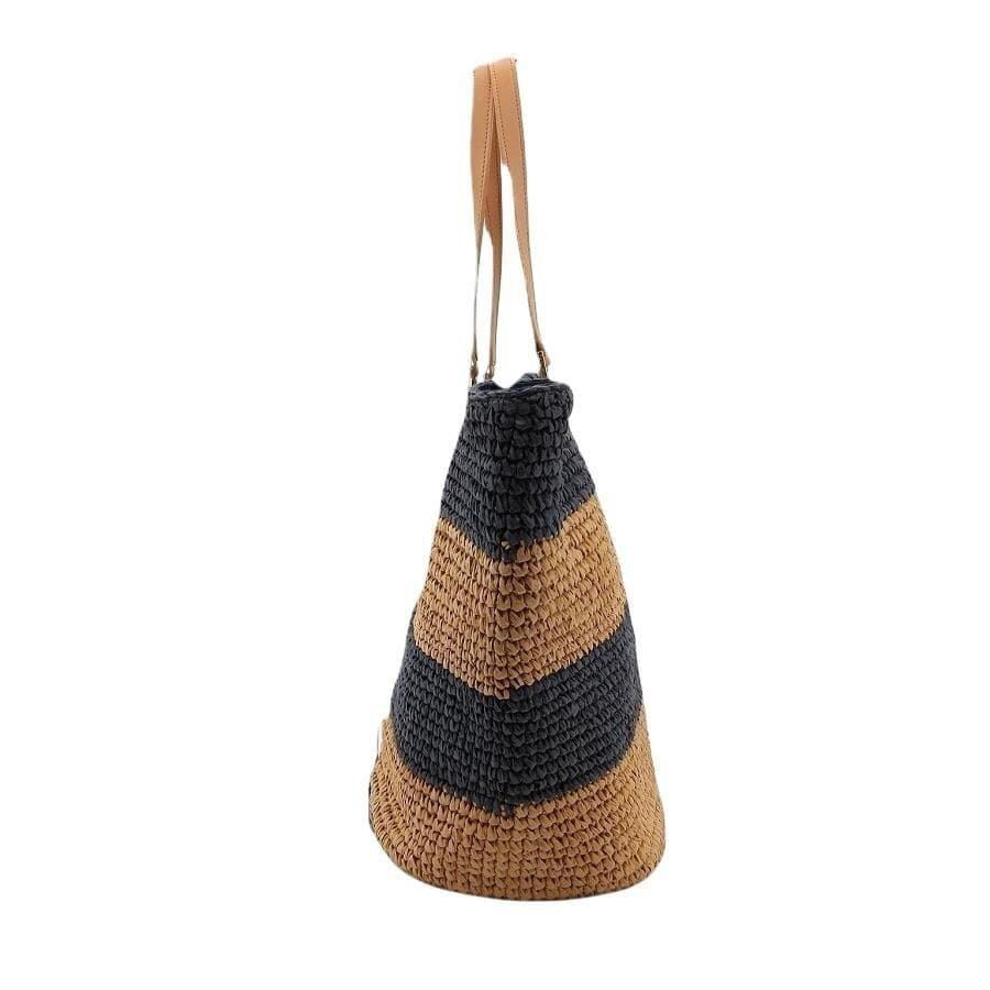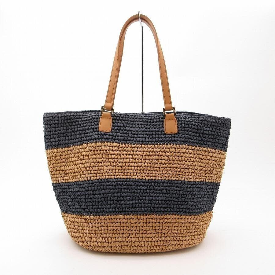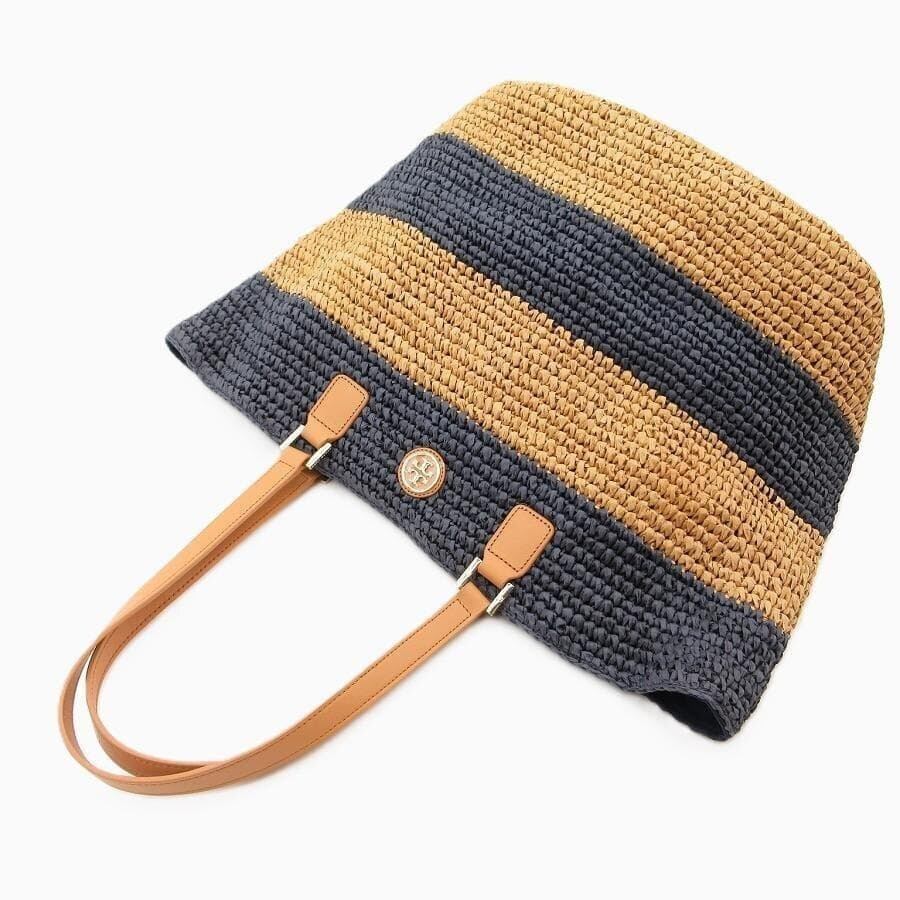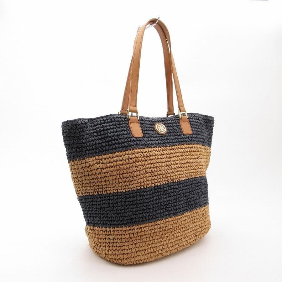 ・送料無料 超美品 トリーバーチ TORY BURCH トートバッグ かごバッグ ハンドバッグ ストローバッグ マザーズバッグ 鞄 手提げ 肩掛け ラフィア ボーダー 紺 ネイビー系 レディース