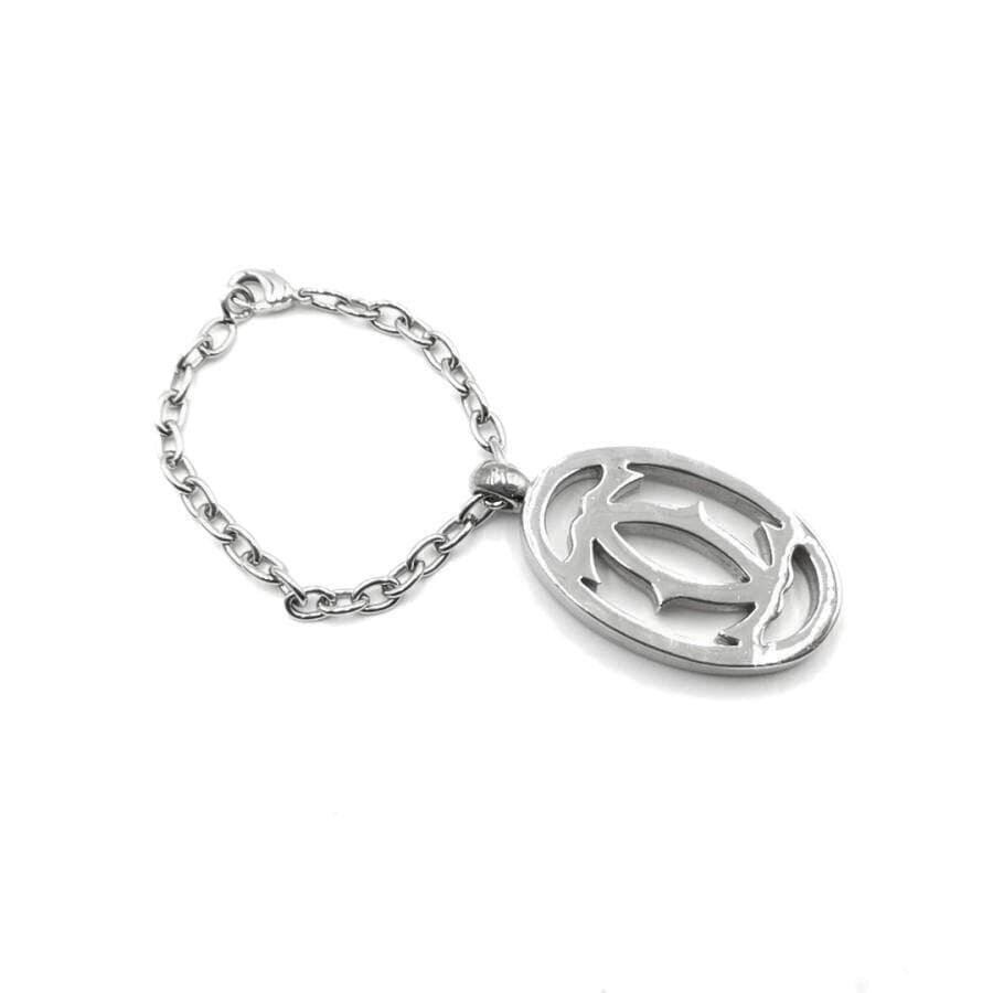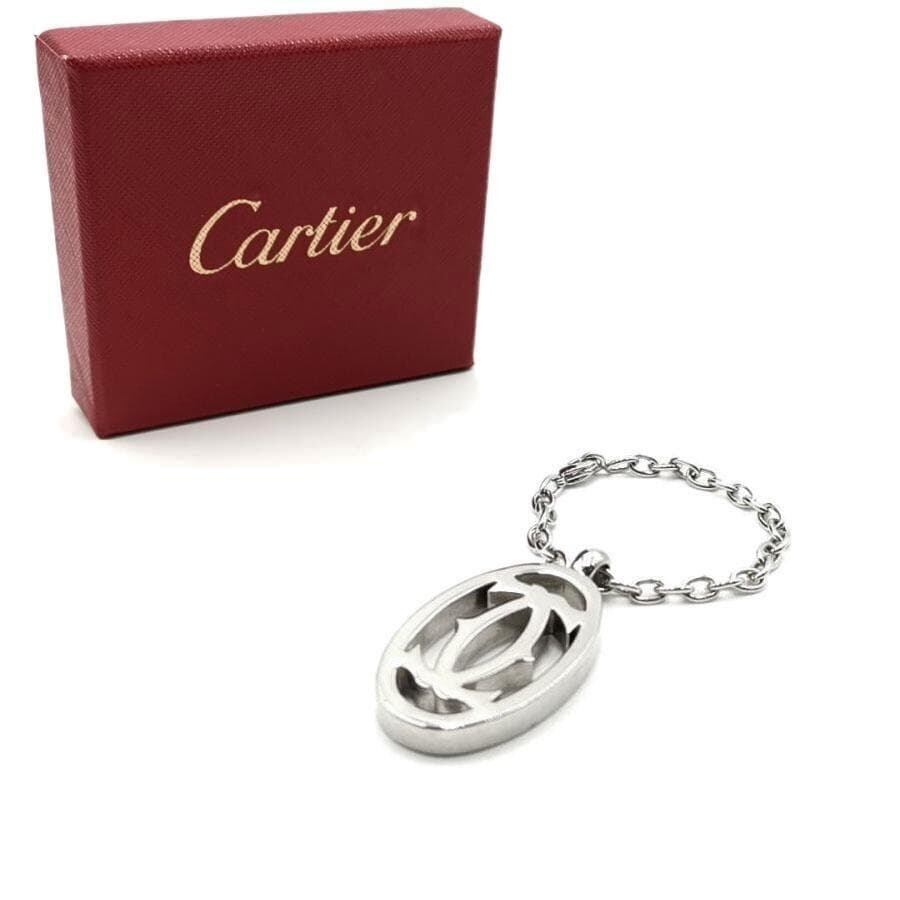 ・送料無料 超美品 カルティエ Cartier 2Cキーホルダー チャーム オーバル 小物 キーリング マスト ロゴ シルバー系 レディース