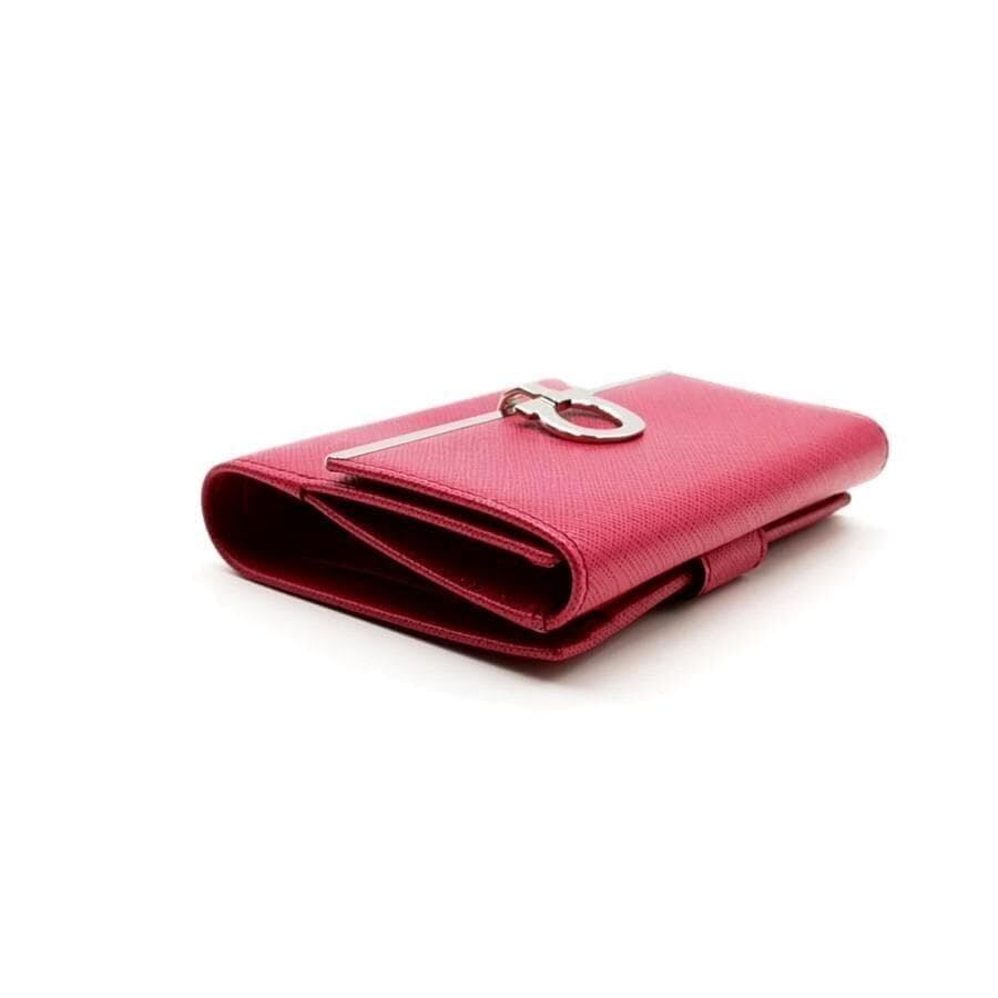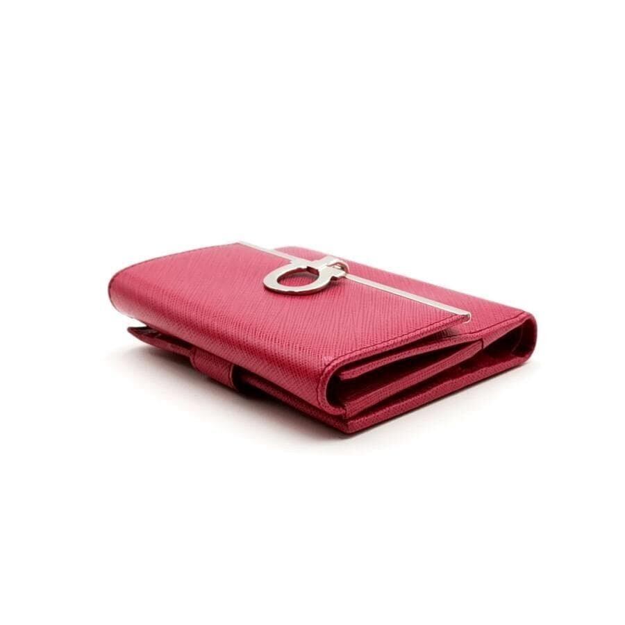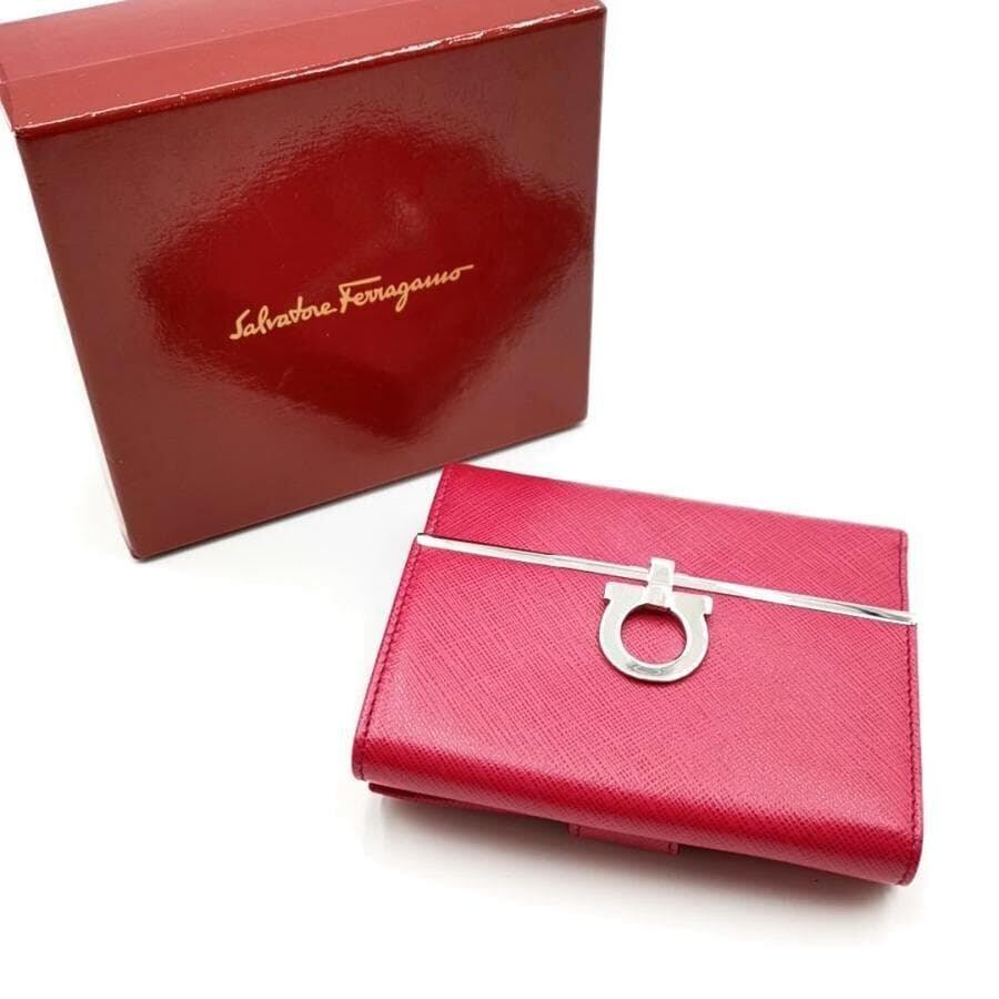 ・送料無料 超美品 サルヴァトーレフェラガモ Salvatore Ferragamo 財布 二つ折り ミディアムウォレット 594501 4639-027-3-830 ガンチーニ レザー 本革 ピンク系 レディース