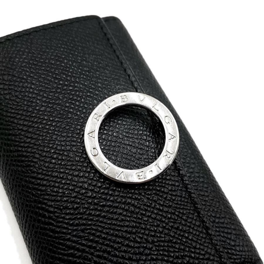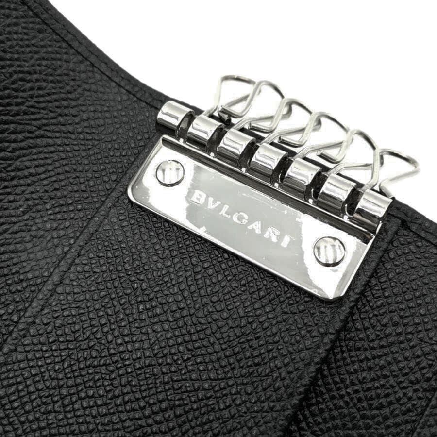 ・送料無料 超美品 ブルガリ BVLGARI 6連キーケース キーホルダー 三つ折り レザー 本革 伊製 イタリア製 黒 ブラック系 メンズ
