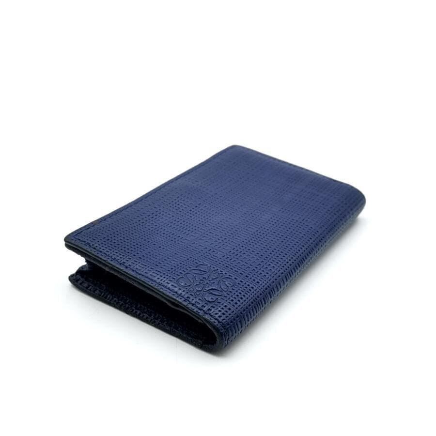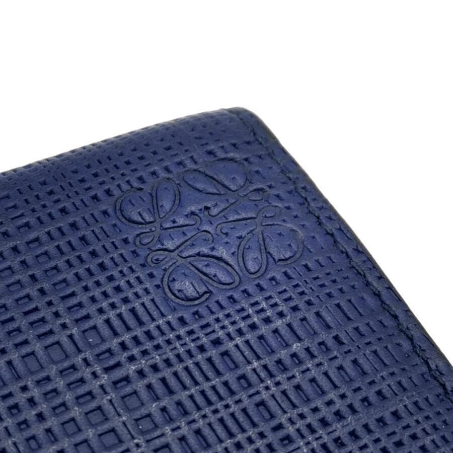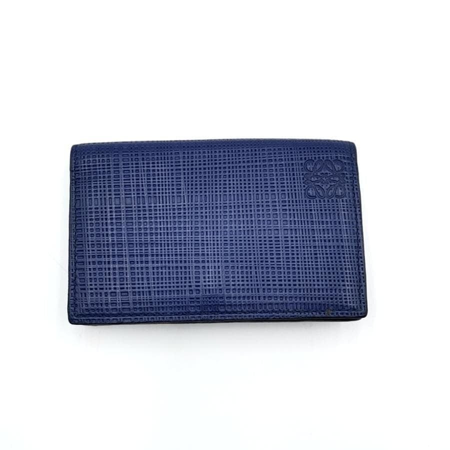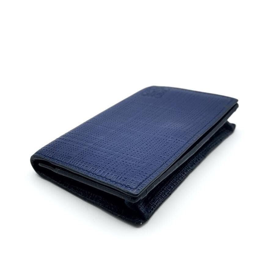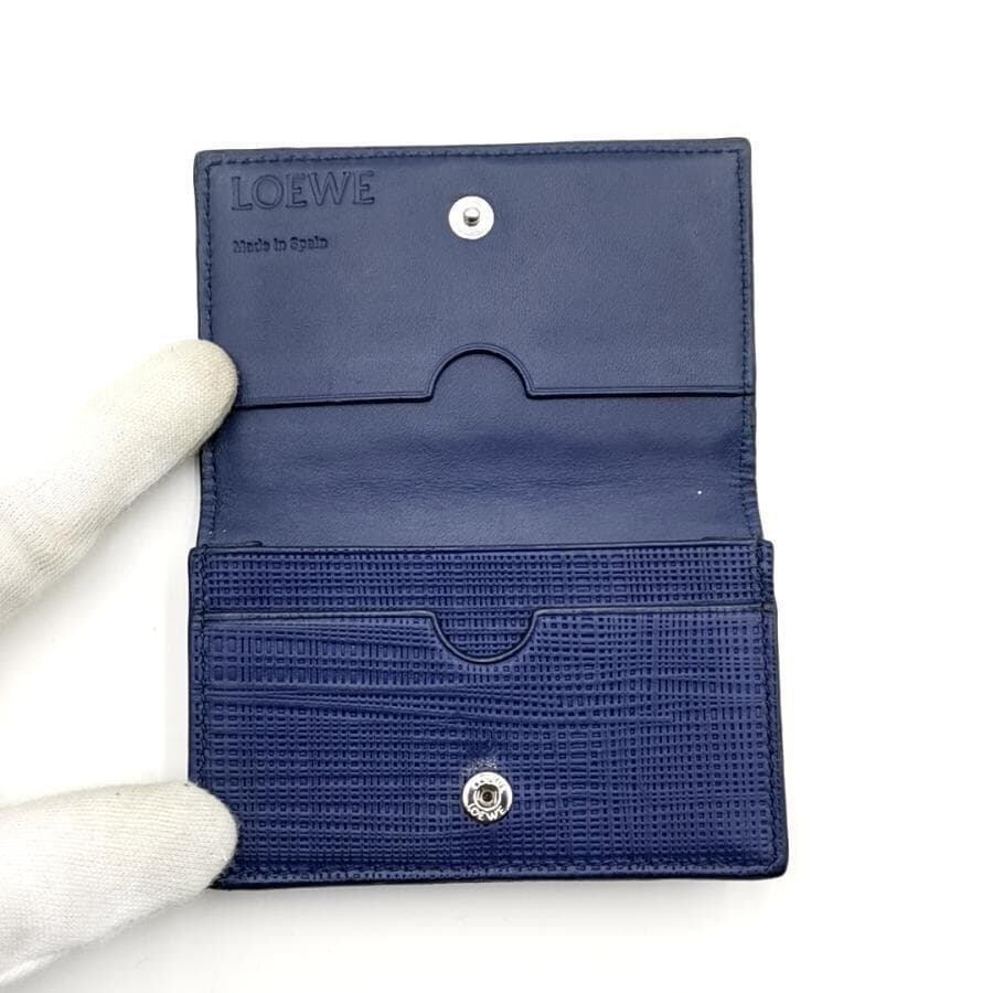・送料無料 美品 ロエベ LOEWE 名刺入れ カードケース カード入れ 二つ折り アナグラム LINEN リネン レザー 本革 スペイン製 青 ブルー系 メンズ