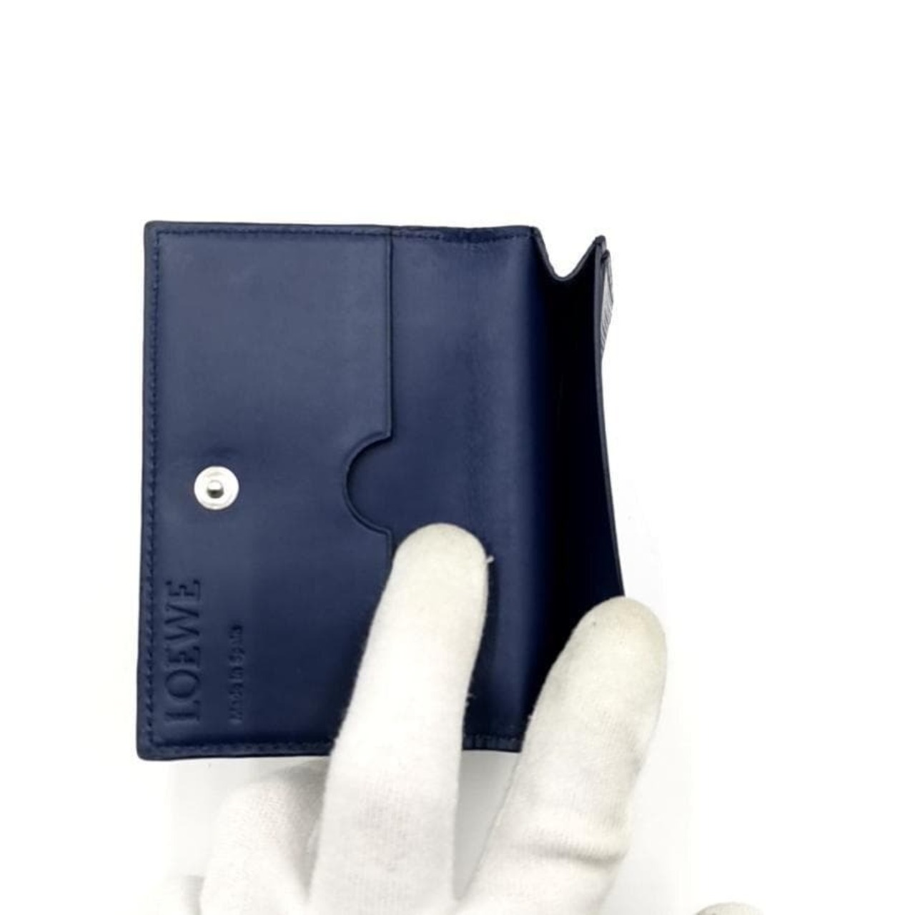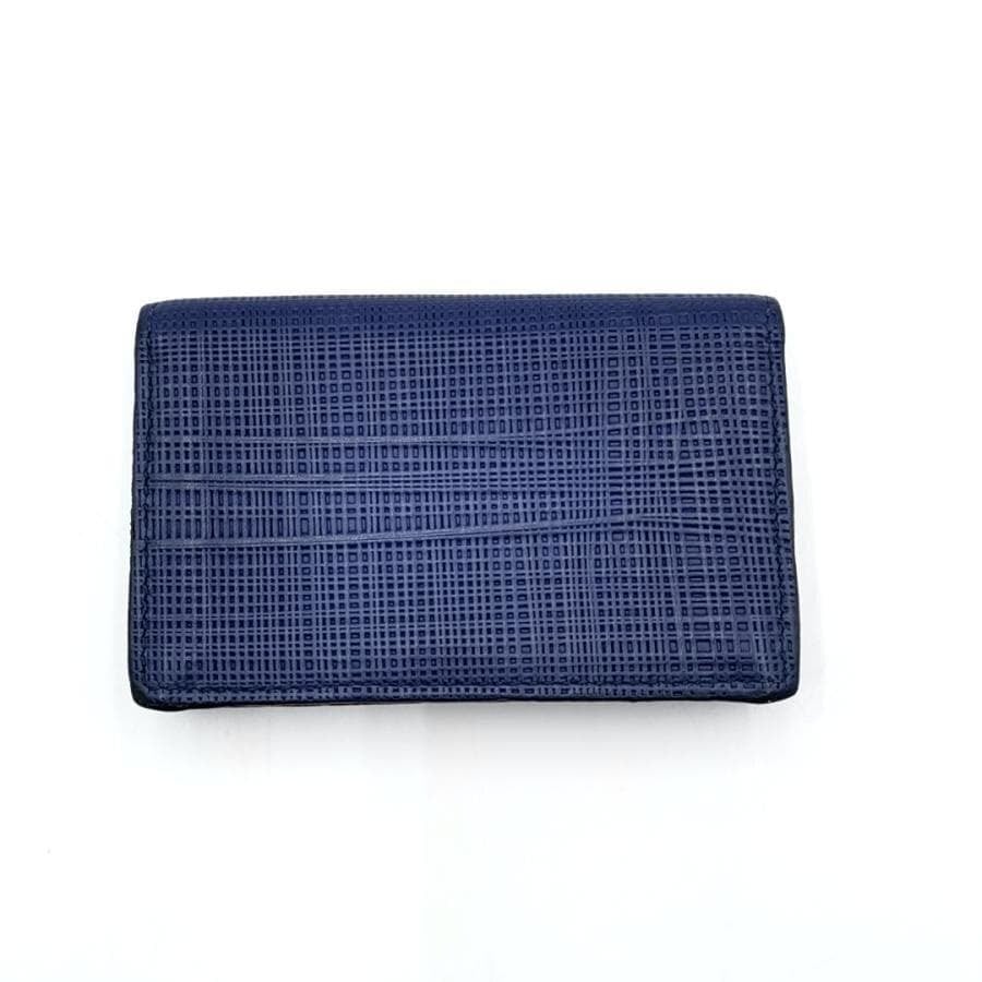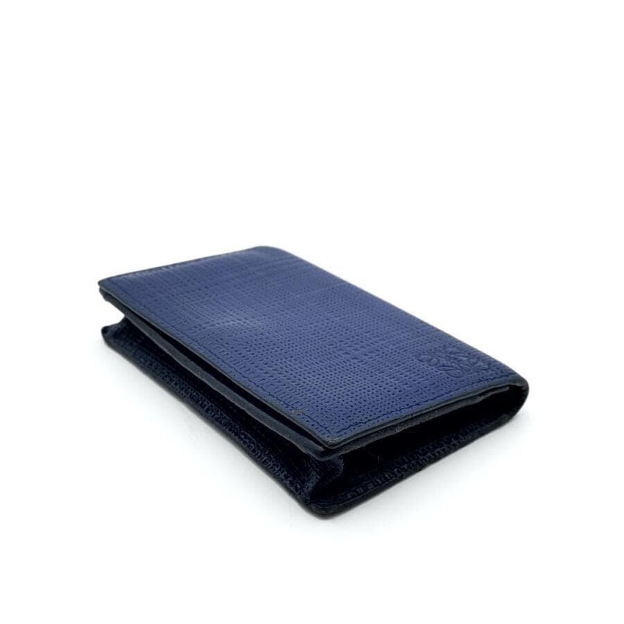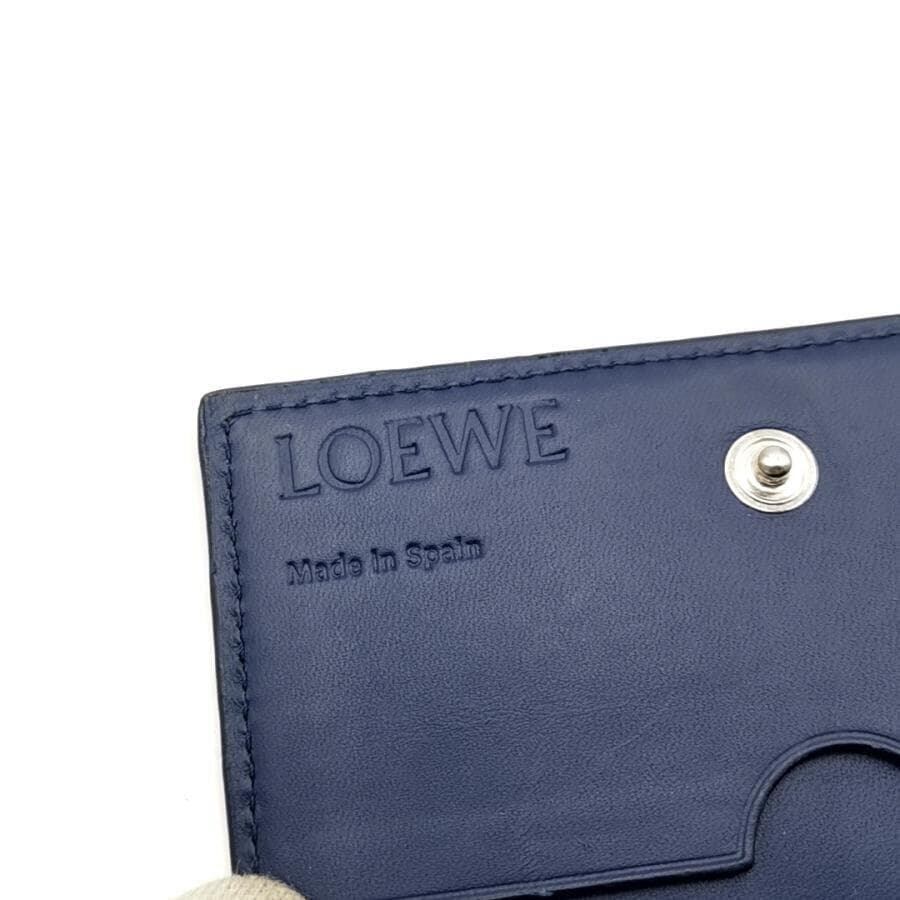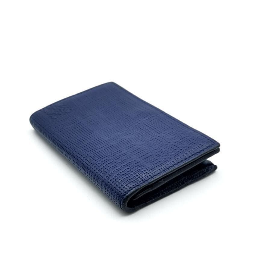 ・送料無料 美品 ロエベ LOEWE 名刺入れ カードケース カード入れ 二つ折り アナグラム LINEN リネン レザー 本革 スペイン製 青 ブルー系 メンズ