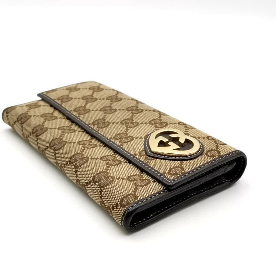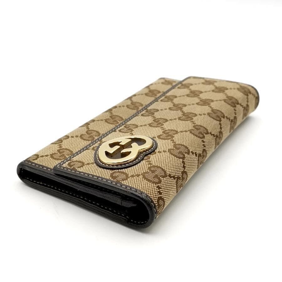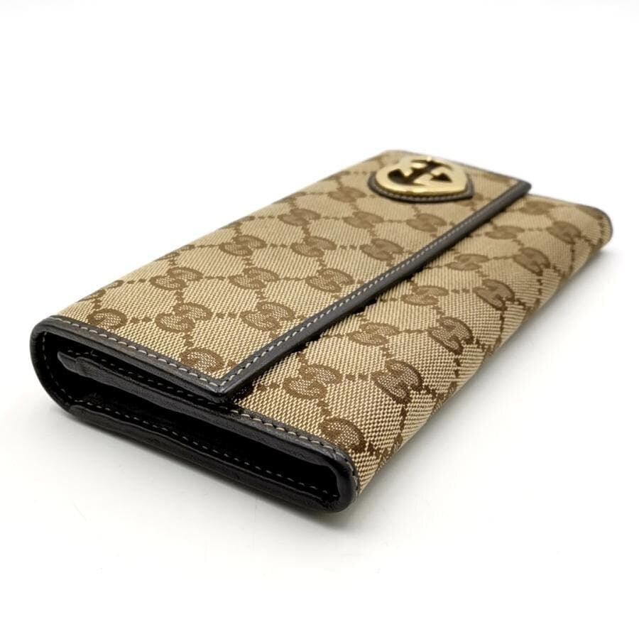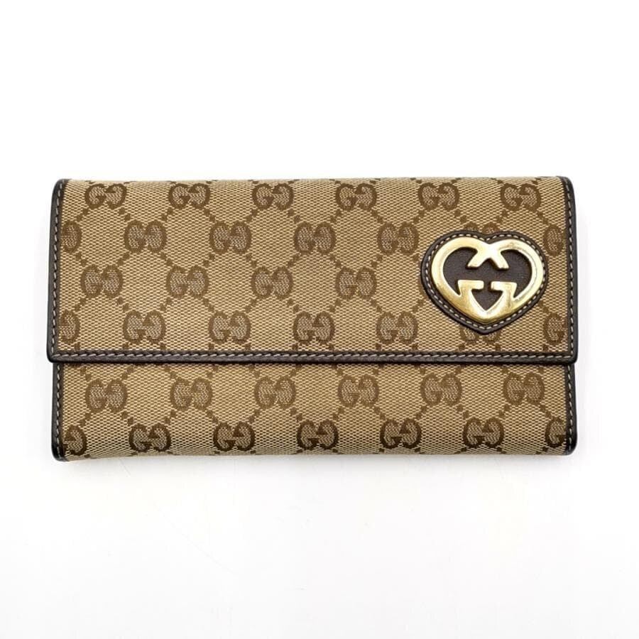 ・送料無料 超美品 グッチ GUCCI 長財布 財布 二つ折り ロングウォレット GGキャンバス 251861-478442 LOVELY ラブリー ハート 伊製 イタリア製 ベージュ系 レディース