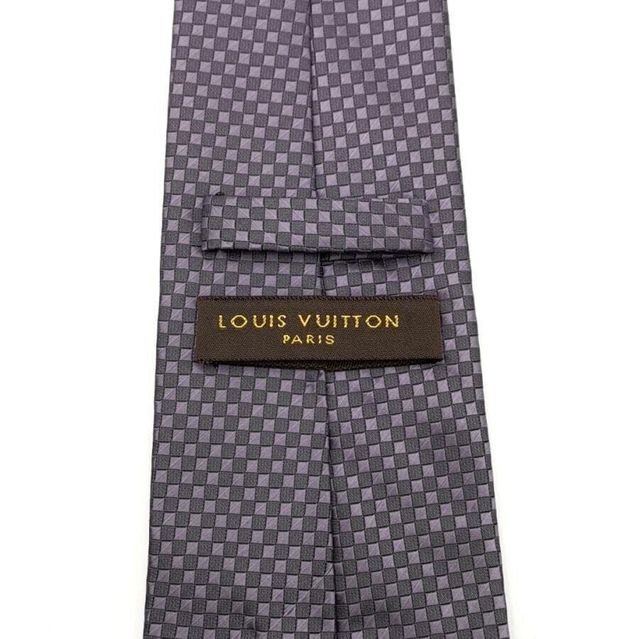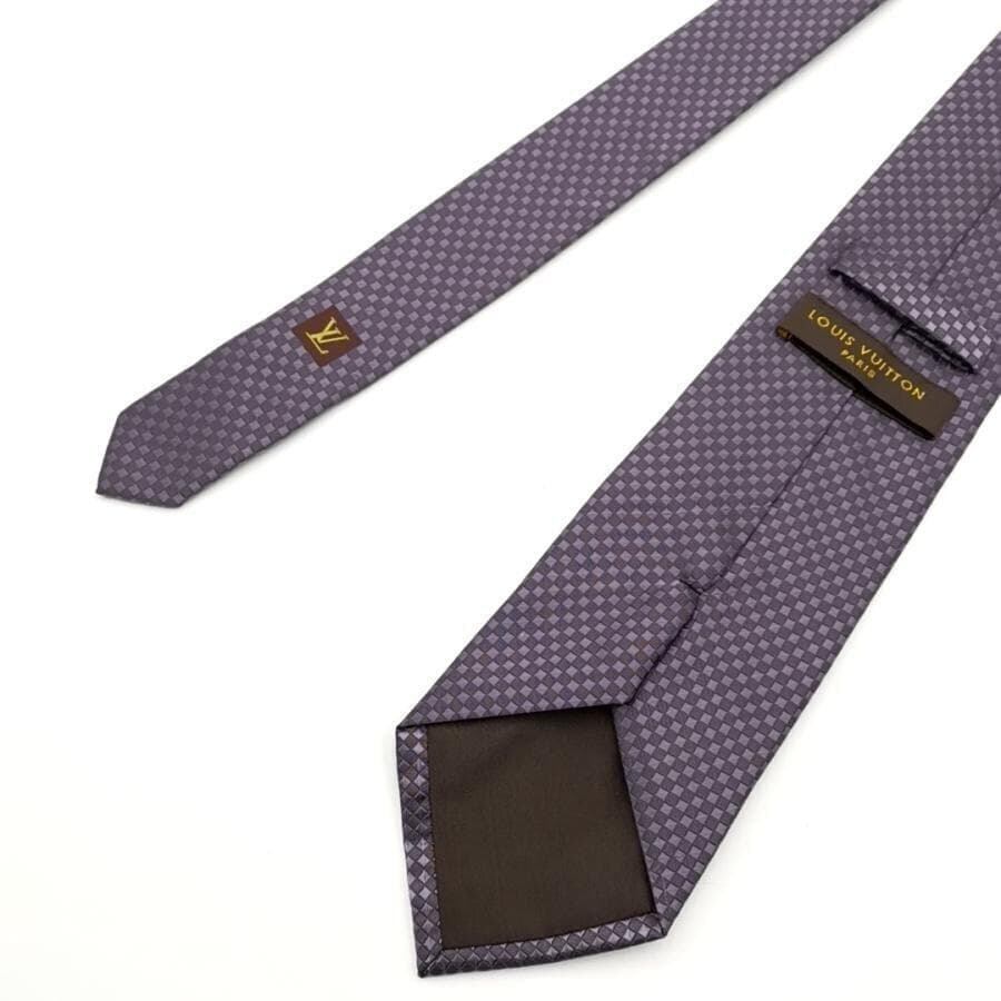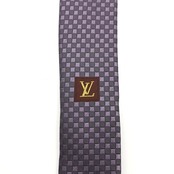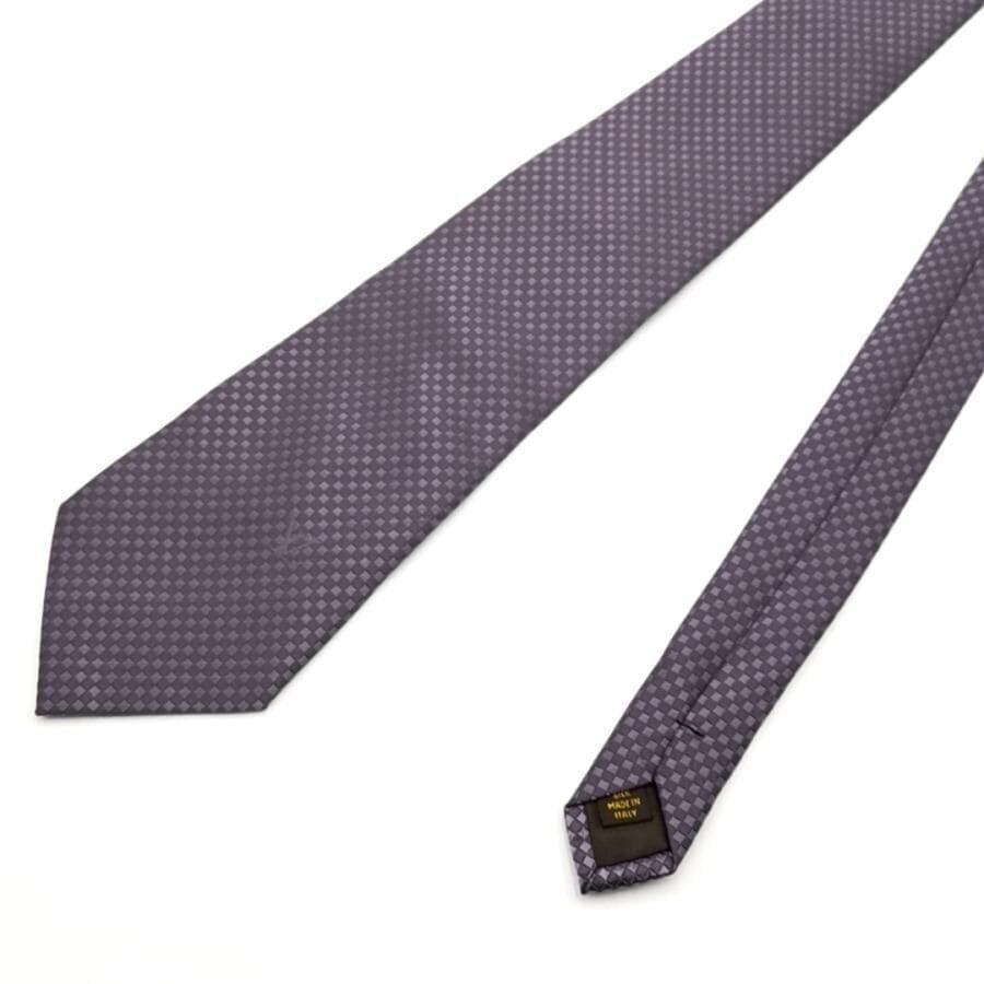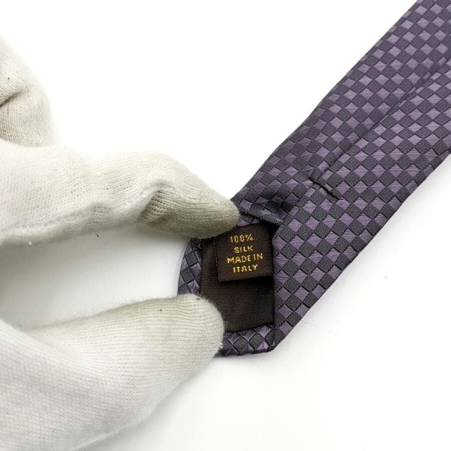 ・送料無料 超美品 ルイヴィトン LOUIS VUITTON ネクタイ チェック柄 絹 シルク100% 伊製 イタリア製 紫 パープル系 メンズ