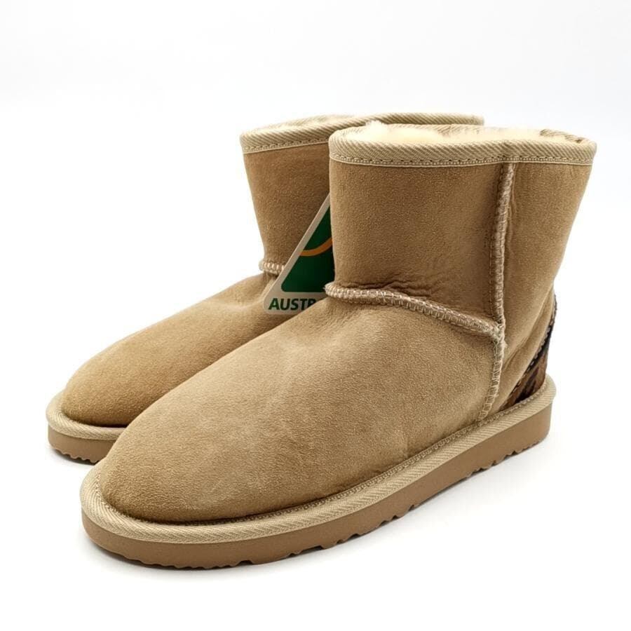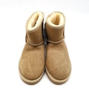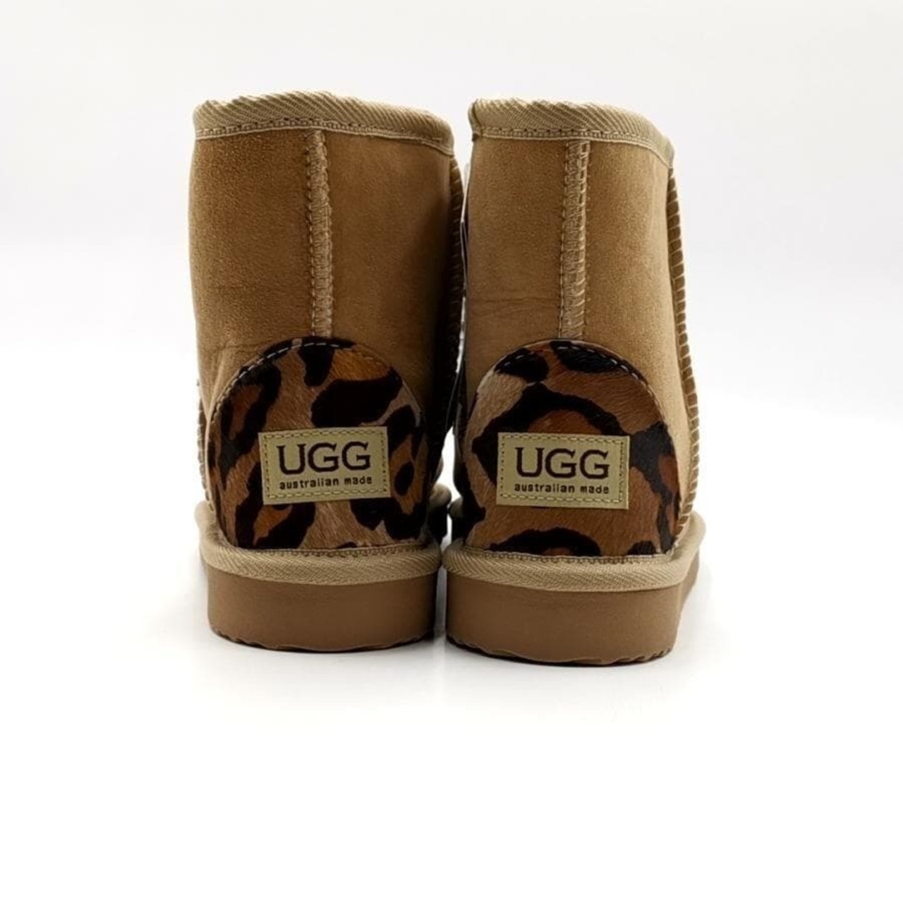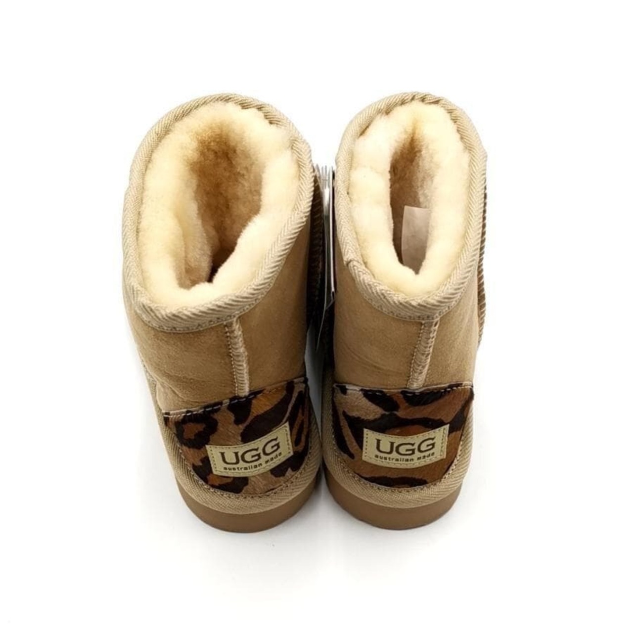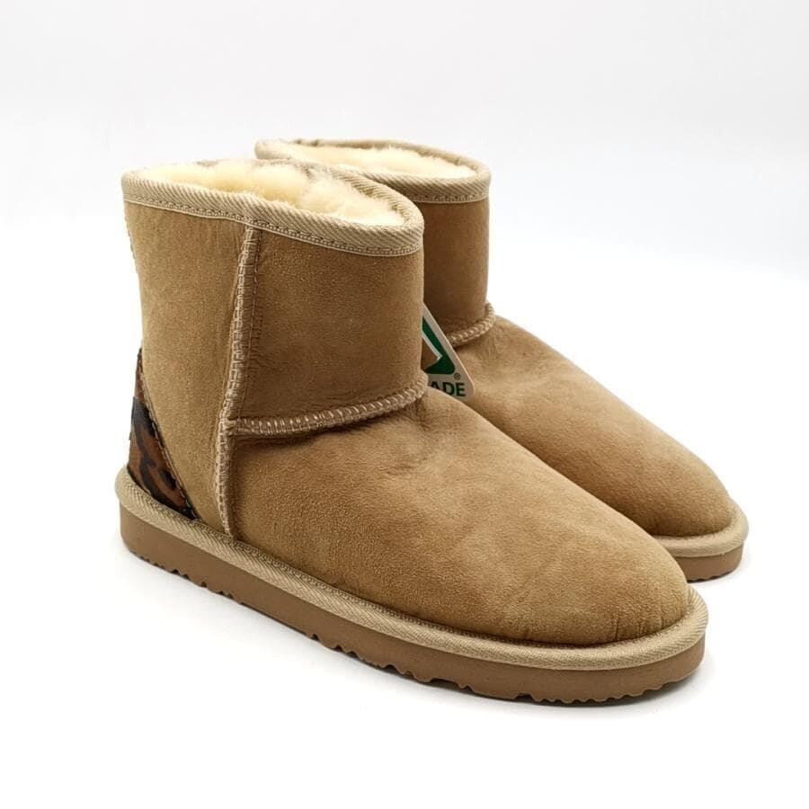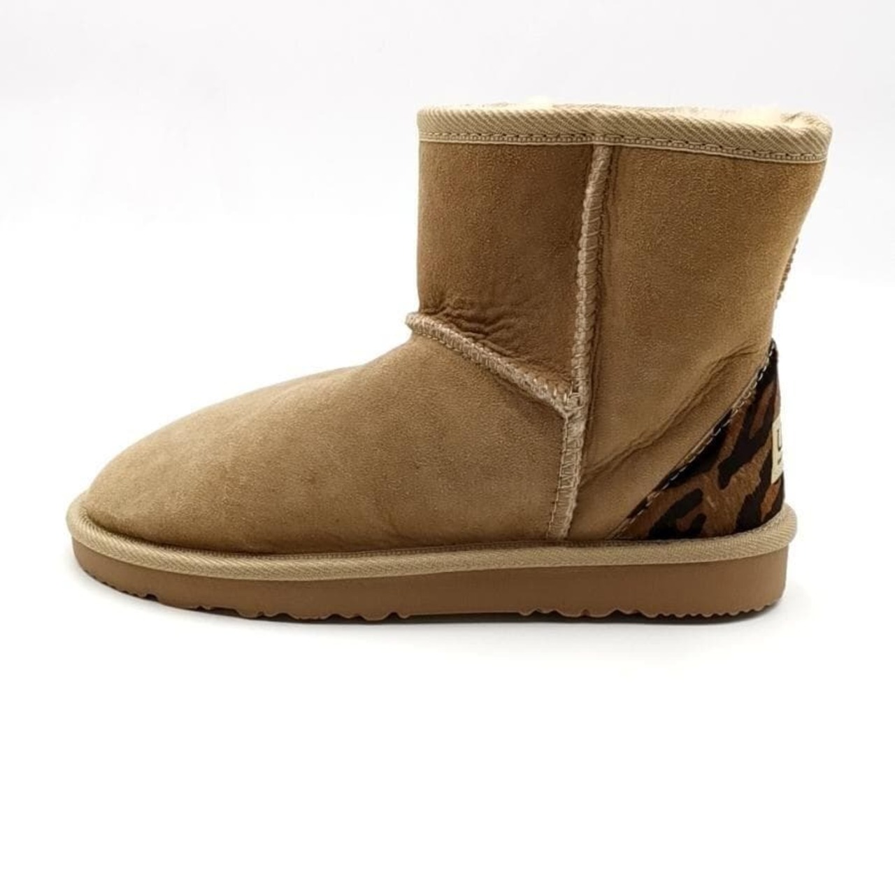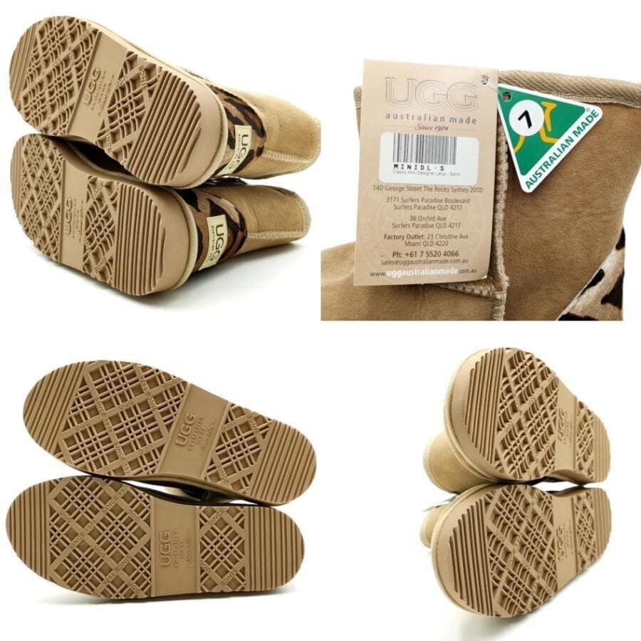 ・送料無料 超美品 アグ オーストラリア UGG Australia ムートンブーツ 靴 シュ−ズ スエード レザー シープスキン レオパード ヒョウ柄 7 24cm相当 茶 ブラウン系 レディース
