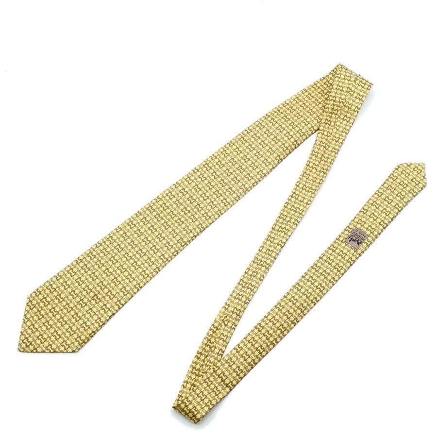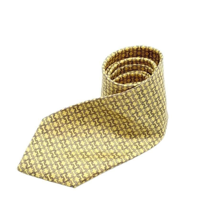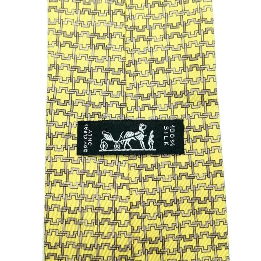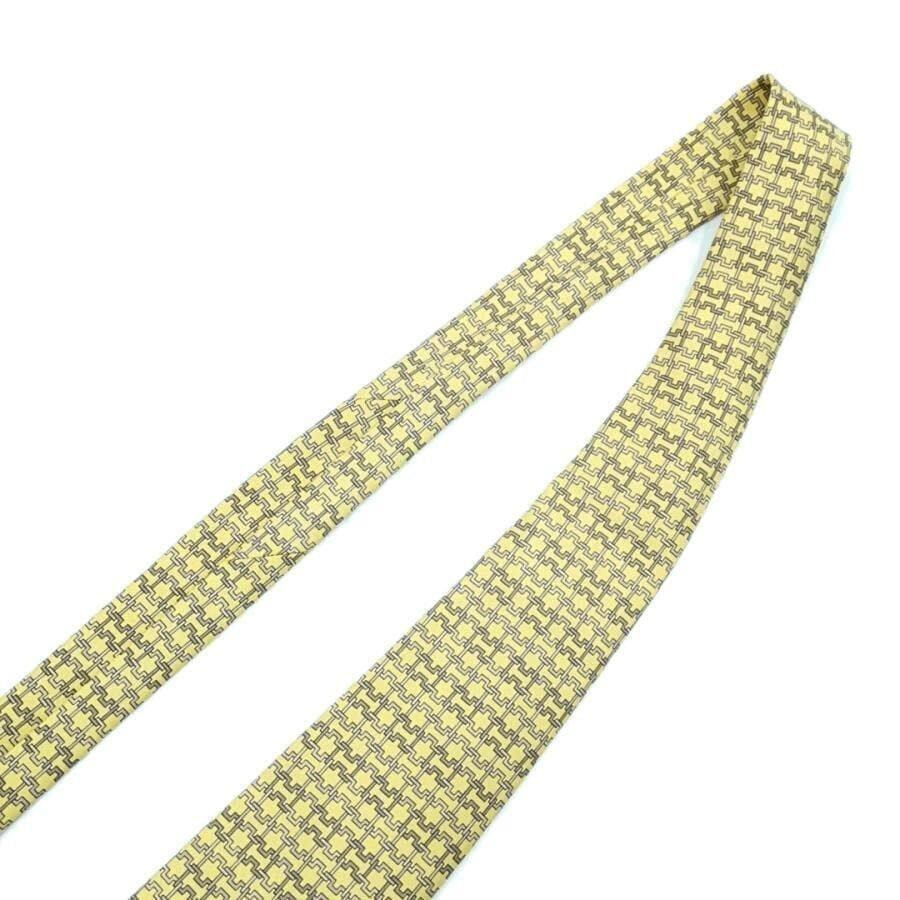 ・送料無料 超美品 エルメス HERMES ネクタイ 総柄 スーツ小物 7986 EA 絹 シルク100% 仏製 フランス製 黄 イエロー系 メンズ