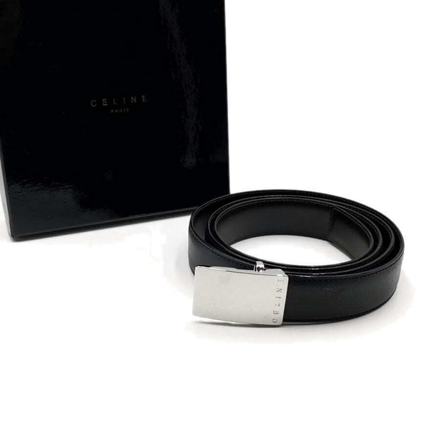 ・送料無料 超美品 セリーヌ CELINE ベルト レザー V/165 ハトメタイプ 伊製 イタリア製 黒 ブラック系 メンズ