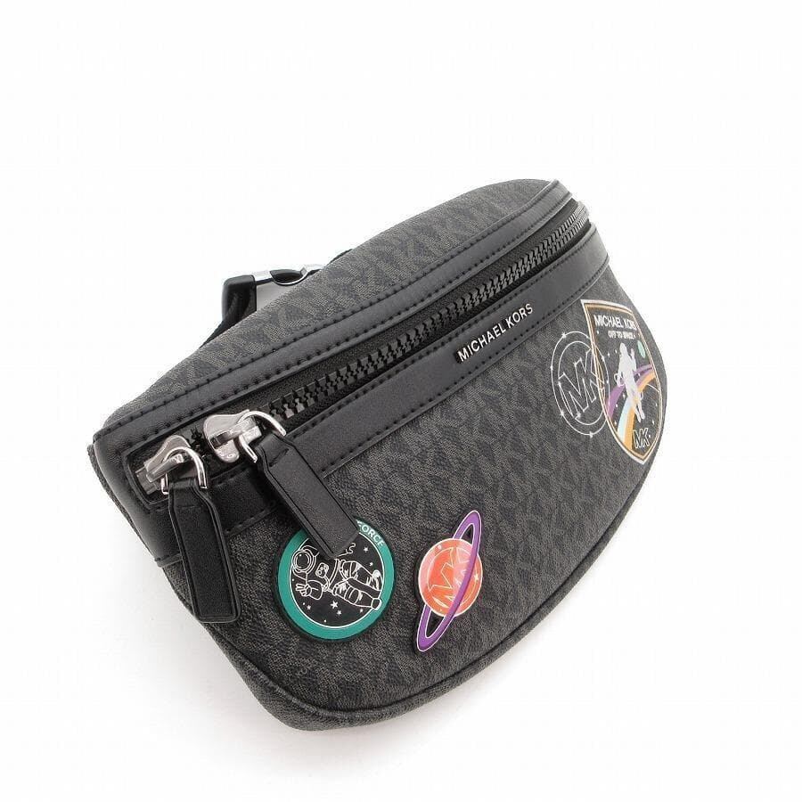 ・送料無料 超美品 マイケルコース MICHAEL KORSMK ボディバッグ スリングバッグ 鞄 37H0LCY0V 宇宙柄 PVC 黒 ブラック系 メンズ