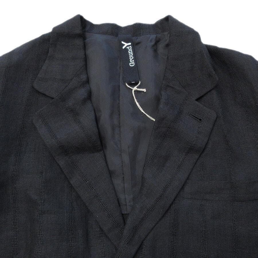 ・送料無料 超美品 グラウンドワイ GroundY ヨウジヤマモト Yohji Yamamoto テーラードジャケット 3B 背抜き アウター オーバーサイズジャケット 24SSRAISED STRIPE OVERSIZED JACKET GS-J08-301-1 麻 リネン 日本製 01 黒 ブラック系 メンズ