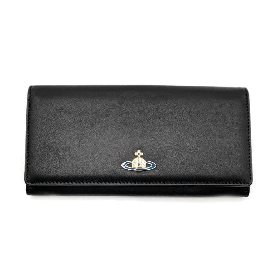・送料無料 超美品 ヴィヴィアンウエストウッド Vivienne Westwood 長財布 財布 二つ折り ロングウォレット オーブ レザー 本革 伊製 イタリア製 黒 ブラック系 レディース
