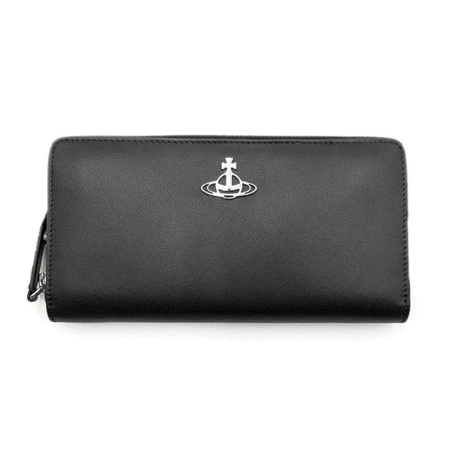 ・送料無料 超美品 ヴィヴィアンウエストウッド Vivienne Westwood 長財布 財布 ラウンドファスナー ラウンドジップ ロングウォレット 322312-51050022 オーブ レザー 本革 伊製 イタリア製 黒 ブラック系 メンズ