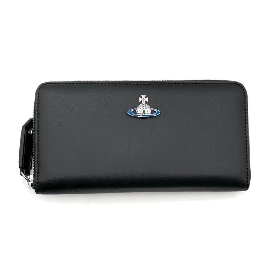 ・送料無料 超美品 ヴィヴィアンウエストウッド Vivienne Westwood 長財布 財布 ラウンドファスナー ラウンドジップ ロングウォレット 51050023-L001L 222-N403 VW5140-126 オーブ レザー 本革 黒 ブラック系 レディース