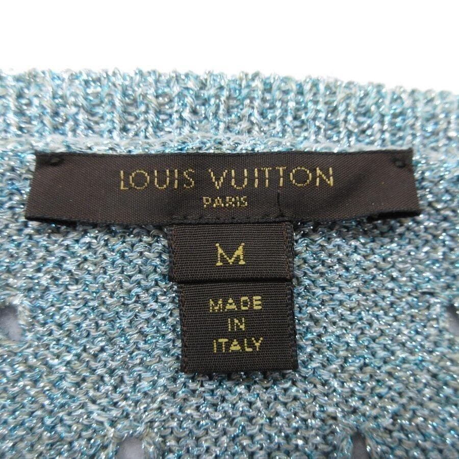 ・送料無料 ルイヴィトン LOUIS VUITTON ドッキング ニット ベスト ラメ 異素材 レイヤード ノ−スリーブ 伊製 イタリア製 M 青 ブルー系 レディース