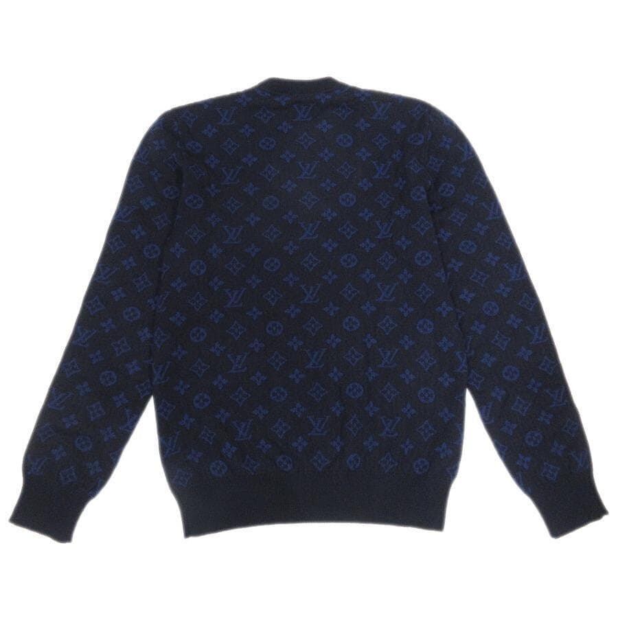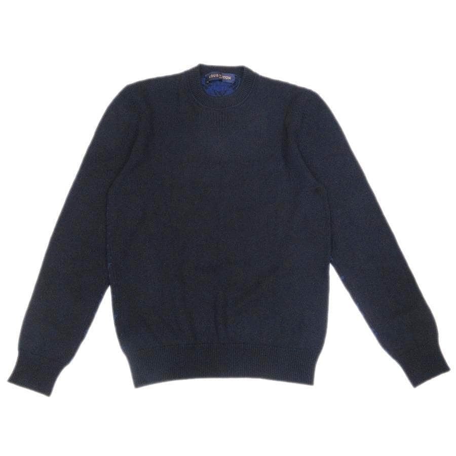 ・送料無料 超美品 ルイヴィトン LOUIS VUITTON セーター カシミヤ ニット 長袖 モノグラム柄 クルーネック プルオーバー HGN41WIXW A046 伊製 イタリア製 M 紺 ネイビー系 メンズ