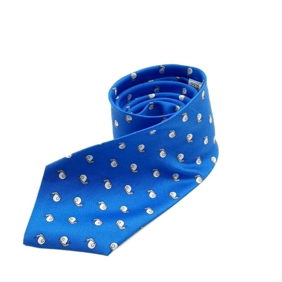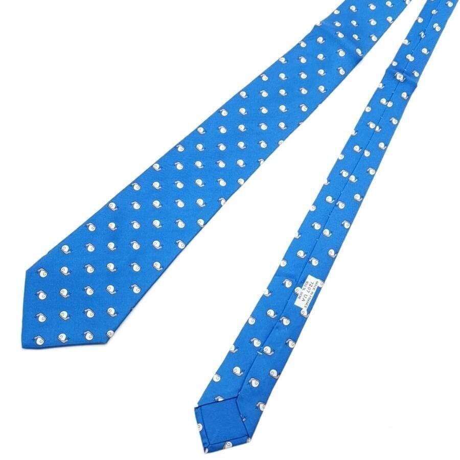 ・送料無料 超美品 エルメス Hermes ネクタイ カタツムリ 総柄 絹 シルク100% 7207 UA 仏製 フランス製 青 ブルー系 メンズ