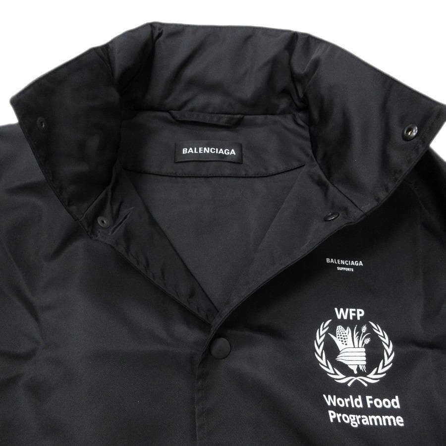 ・送料無料 超美品 バレンシアガ BALENCIAGA 19SS WFPウィンドブレーカー ジャケット アウター ブルゾン World Food Programme 543780 コーチジャケット 伊製 イタリア製 46 黒 ブラック系 メンズ