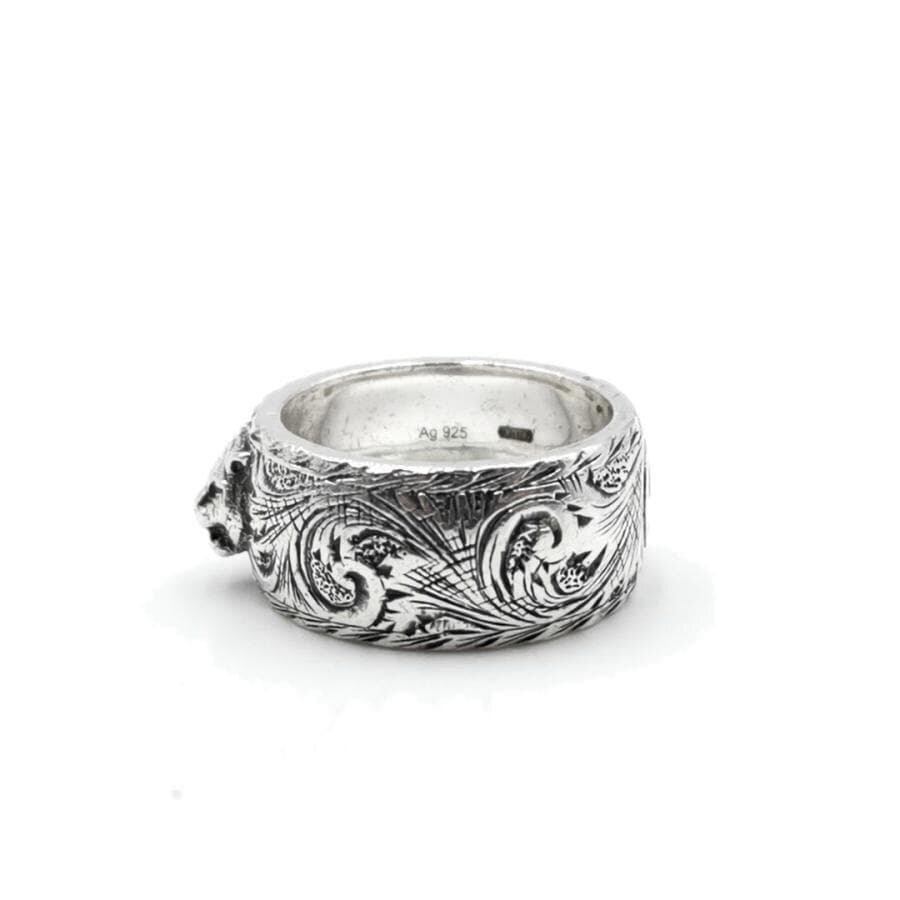 ・送料無料 美品 グッチ GUCCI 指輪 リング アクセサリー 小物 キャットヘッド 猫 ネコ アラベスク シルバー925 伊製 イタリア製 15 14号 レディース