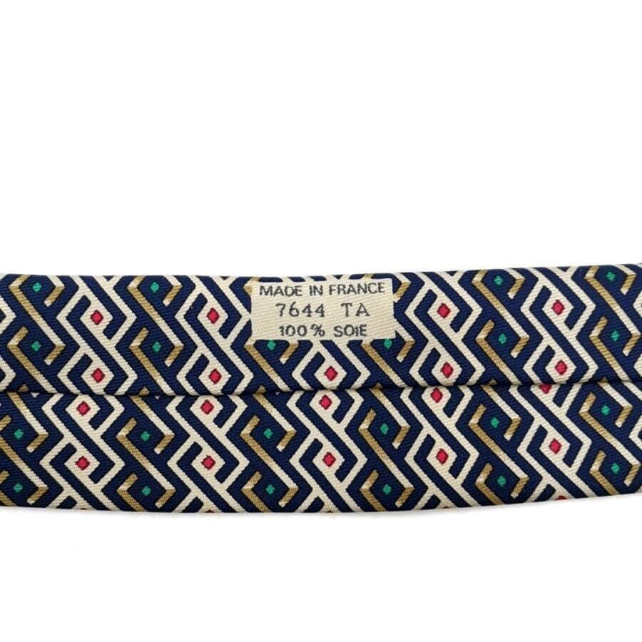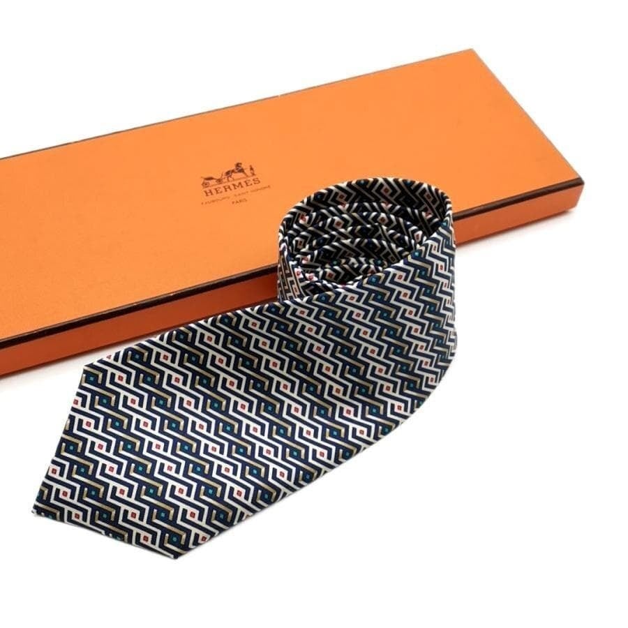 ・送料無料 超美品 エルメス HERMES ネクタイ スーツ小物 総柄 絹 シルク100% 7644-TA 仏製 フランス製 ネイビー系 メンズ