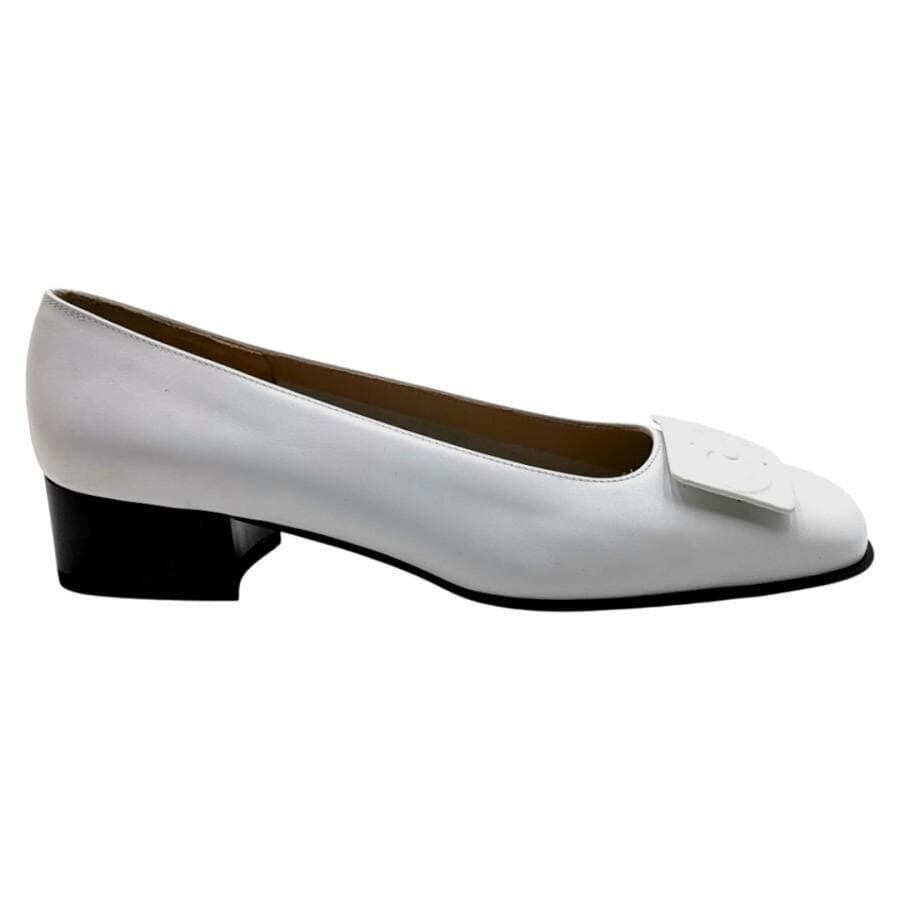 ・送料無料 超美品 サルヴァトーレフェラガモ Salvatore Ferragamo パンプス 靴 シューズ DL82756B37 ローヒール ガンチーニ 伊製 イタリア製 6C 23cm相当 白 ホワイト系 レディース